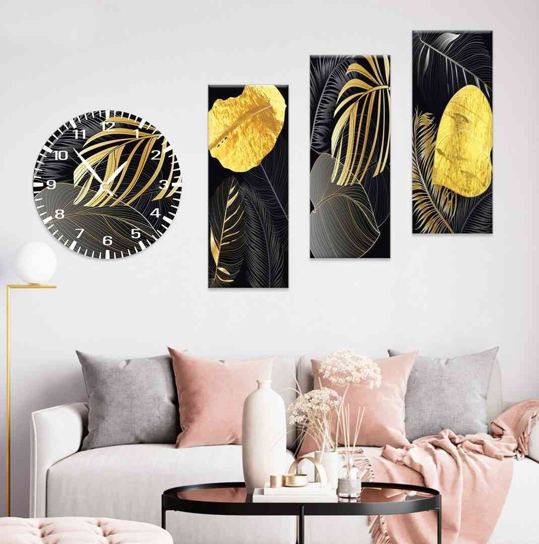 Evimona 4 Parça Çiçek Temalı Mdf Saatli Tablo Ds-082