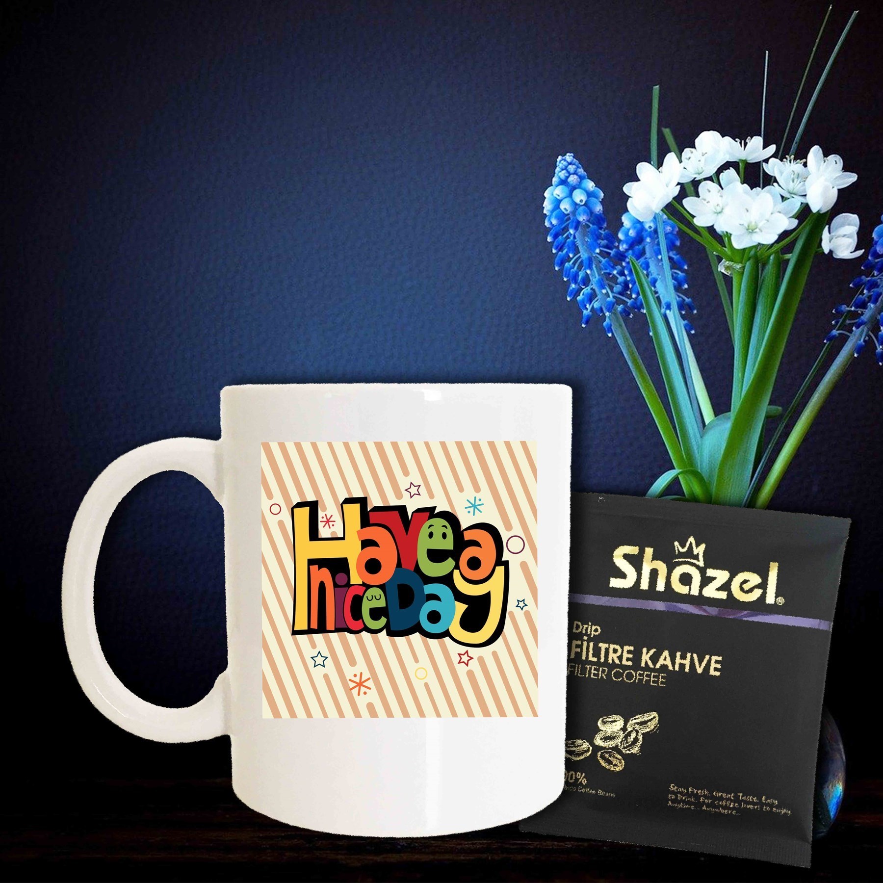 Mutlu Günler Desenli Porselen Kupa Bardak