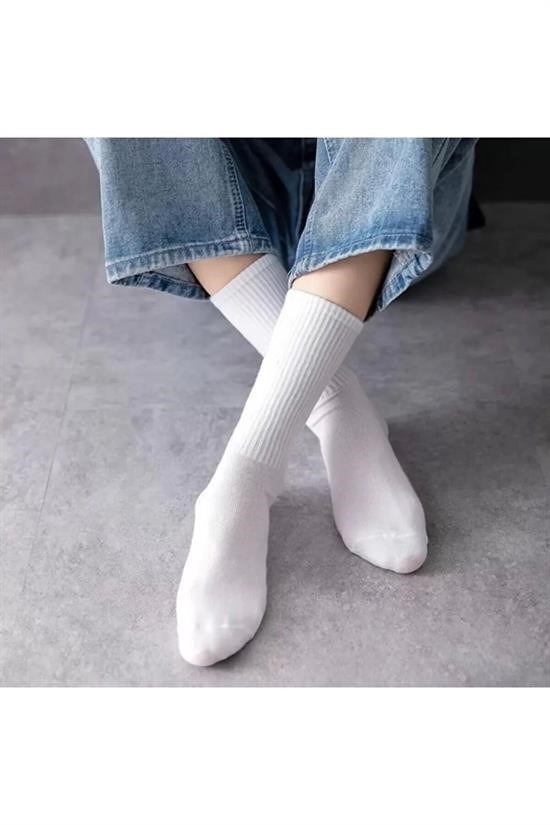 10 Adet Beyaz Kolej Düz Desensiz Çorap Unisex 42-46