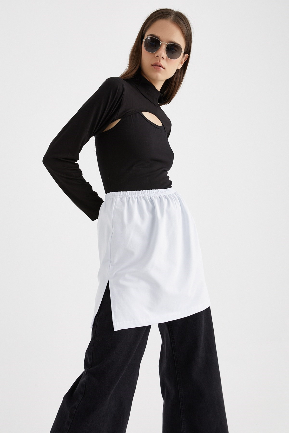 Beyaz Yırtmaçlı İçlik Etek - XXL/3XL