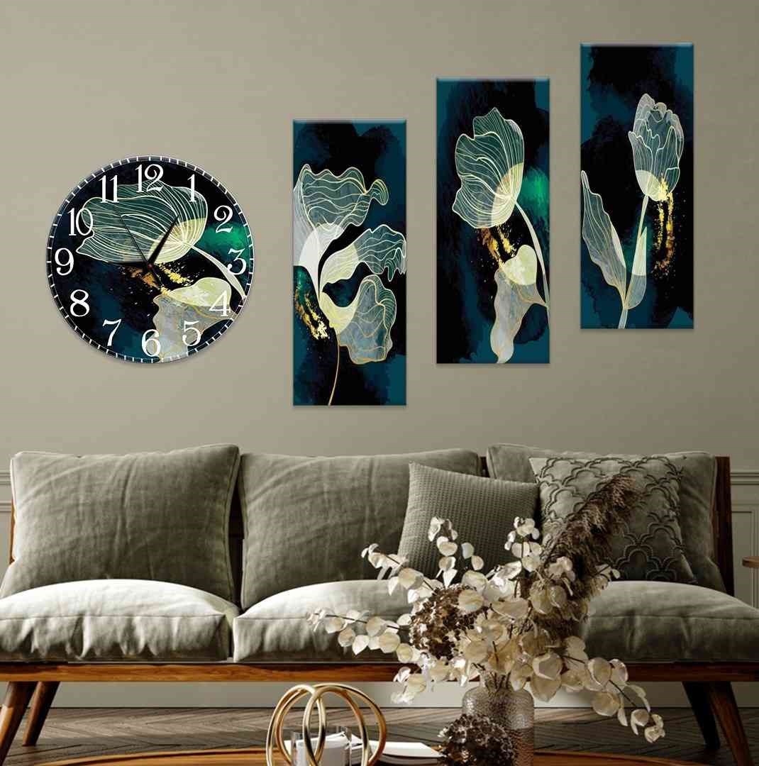 Evimona 4 Parça Çiçek Temalı Mdf Saatli Tablo Ds-0140