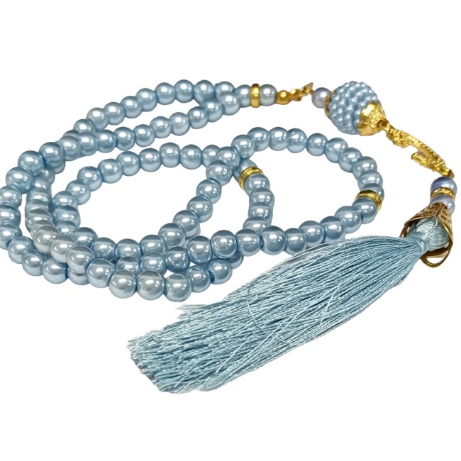 Namaz Tesbihi Vavlı 99'lu Cam İncili İsmi Azam Dua Kartı İle Mavi Renk Hediyelik