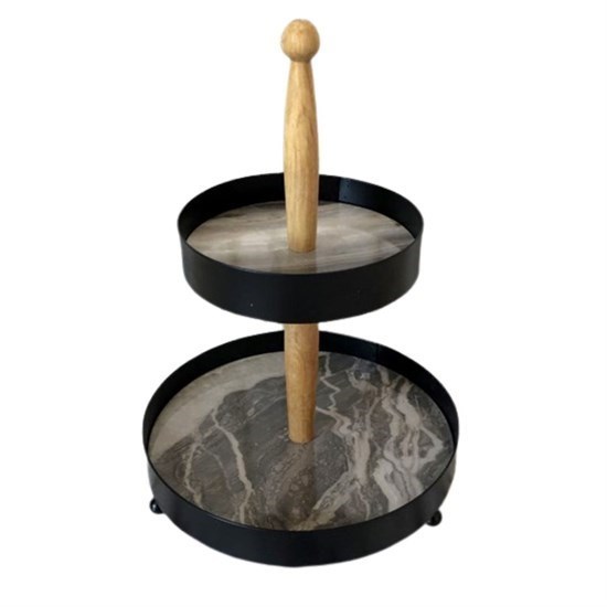 Werony İki Katlı Mini İkramlık Mermer Desen - 30420