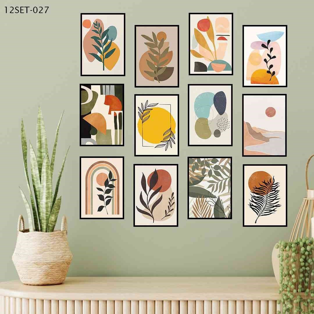 12Li Çerçeve Görünümlü Soyut Pastel Renkler Mdf Tablo - 12set-027 15x20