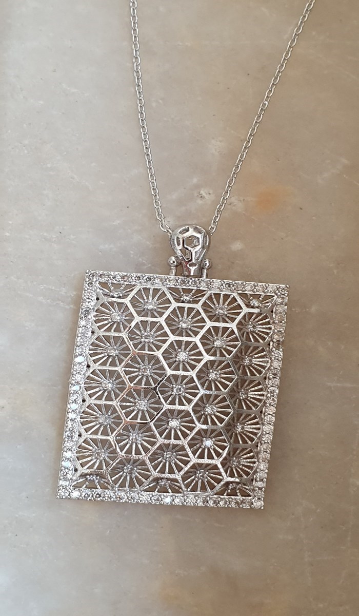 Gümüş Kaplama Zirkon Taşlı Yaşam Kare Kolye