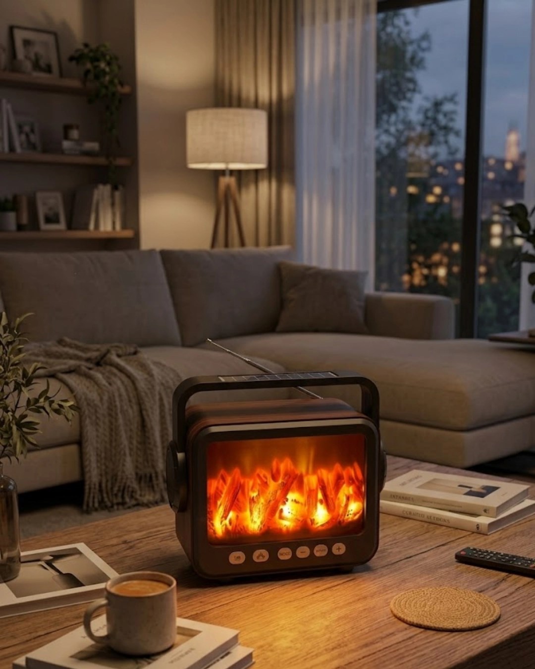 Taşınabilir Şömine Görünümlü Bluetooth Hoparlör – Solar Şarjlı, Alev Işıklı, 7w Ses