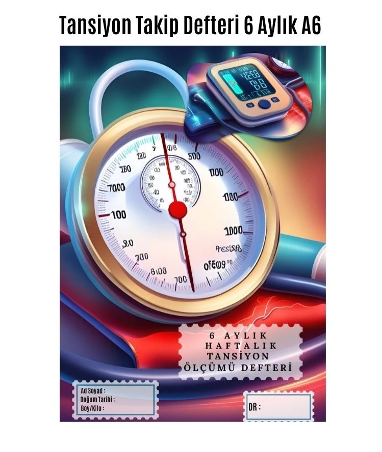 Tansiyon Ölçüm Takip Çizelgesi Defteri A Kalite Özel Tasarım 6 Aylık A6 Boyut