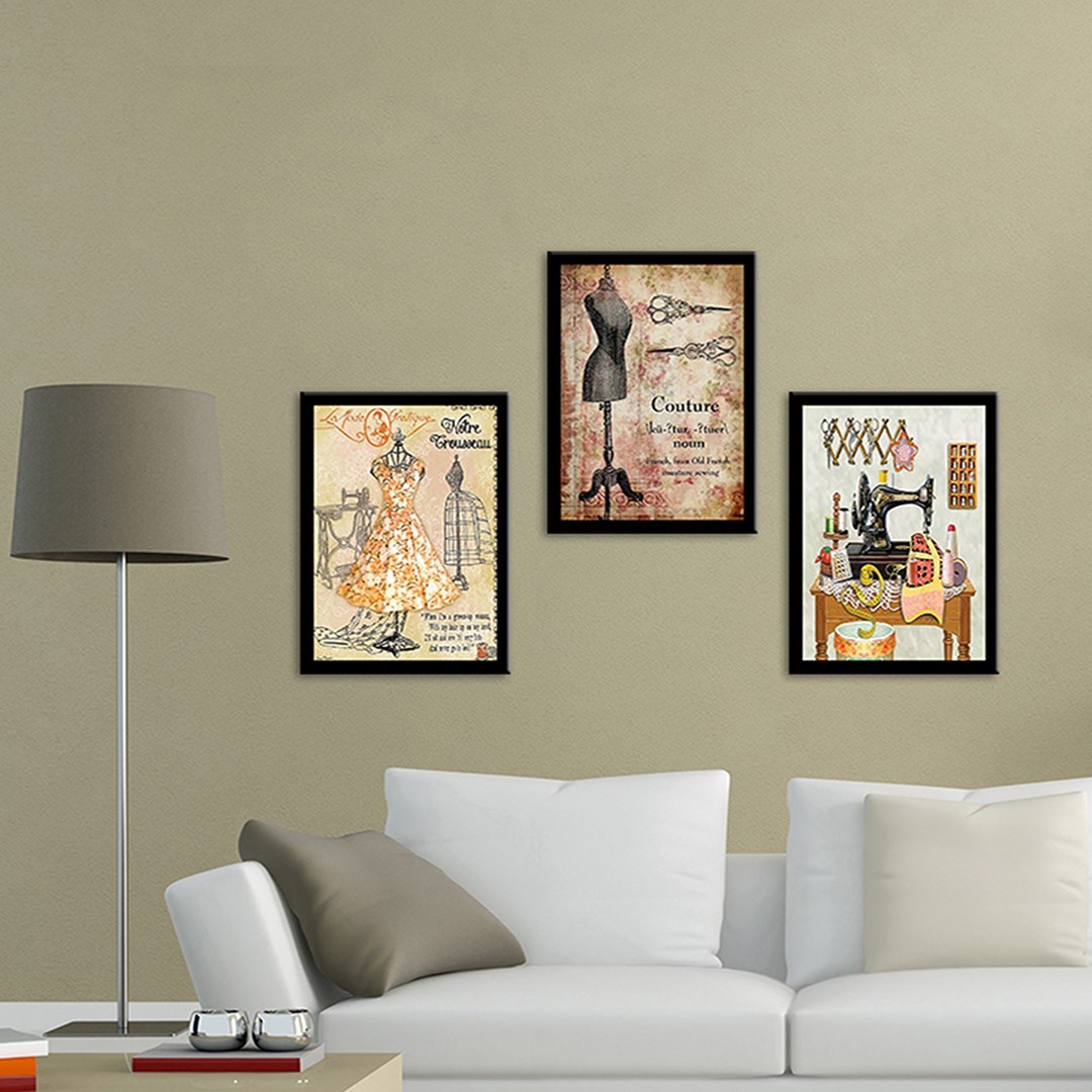 3 Parça Çerçeve Görünümlü Dikiş Atölye Temalı Tasarım Mdf Tablo - 3Prc40X30-0152 40X30