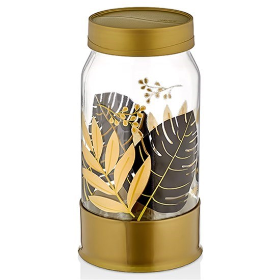 Altın Yaprak Desenli Kavanoz 1000Cc-13598