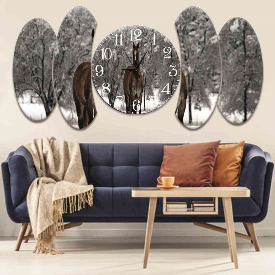 Evimona 5 Parça Kabe Temalı Tasarım Saatli Mdf Tablo