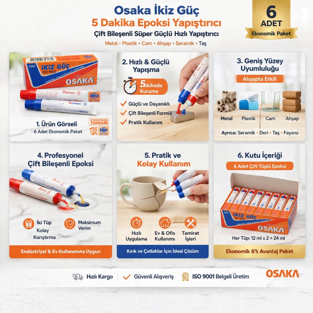epoksi yapıştırıcı, çift bileşenli yapıştırıcı, hızlı yapıştırıcı, 5 dakika yapıştırıcı, güçlü yapıştırıcı, osaka epoksi, metal yapıştırıcı, plastik yapıştırıcı, cam yapıştırıcı, ahşap yapıştırıcı, tamir yapıştırıcı, endüstriyel yapıştırıcı, güçlü epoksi, çift tüp yapıştırıcı