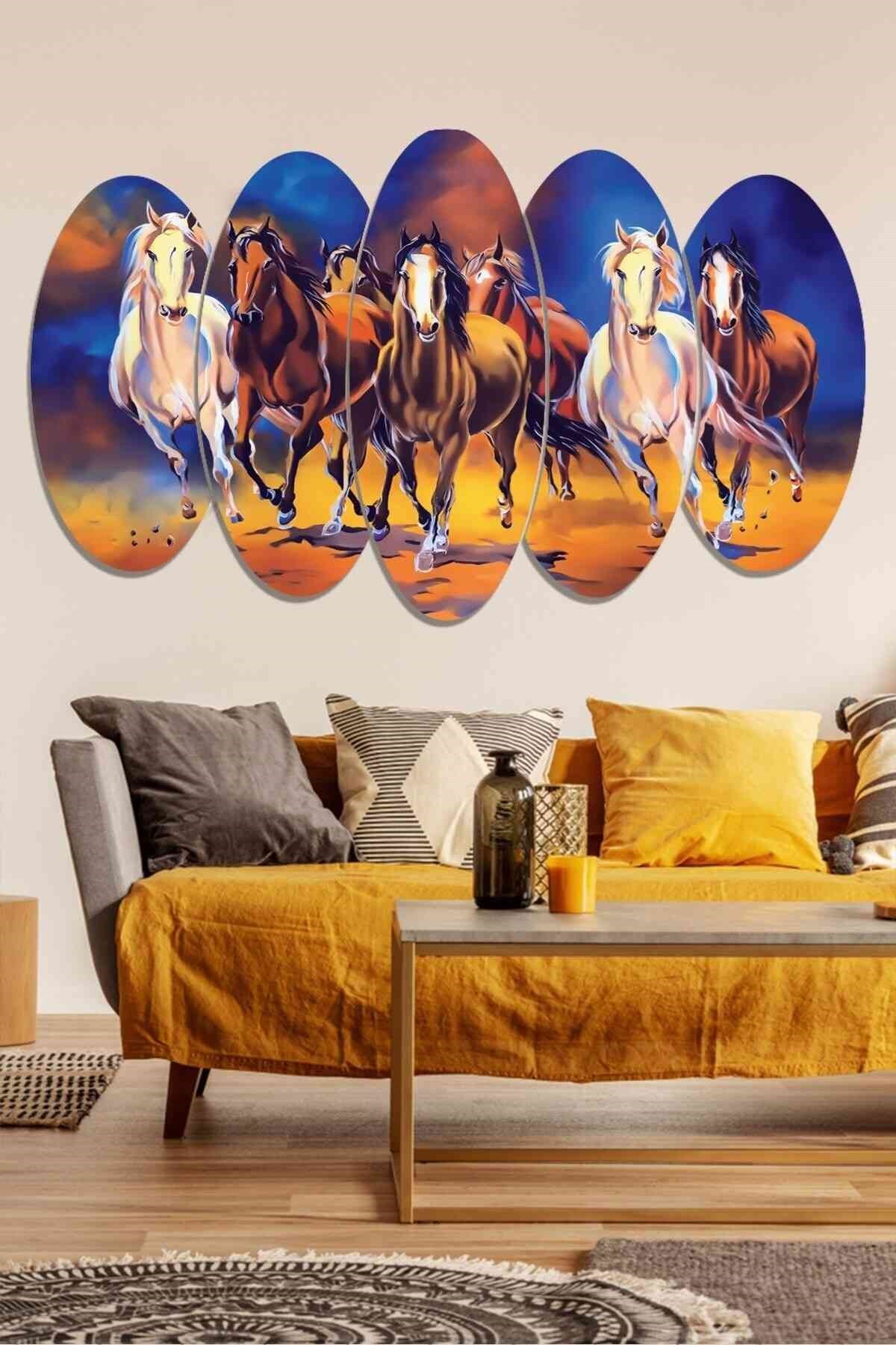 5 Parçalı Koşan Atlar Mdf Tablo