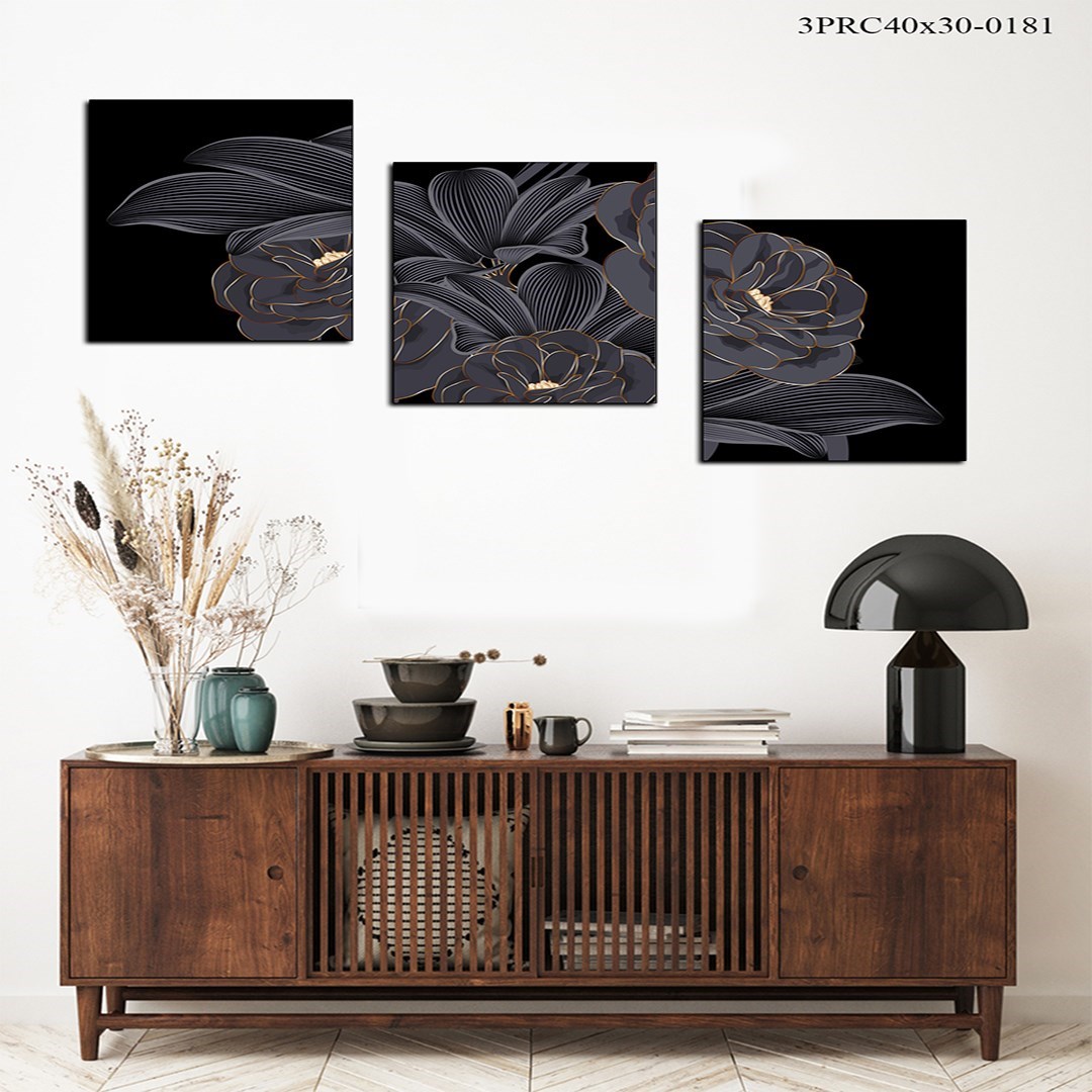3Parça Füme Gri Çiçekler Mdf Tablo - 3Prcy40X30-0181 40X30