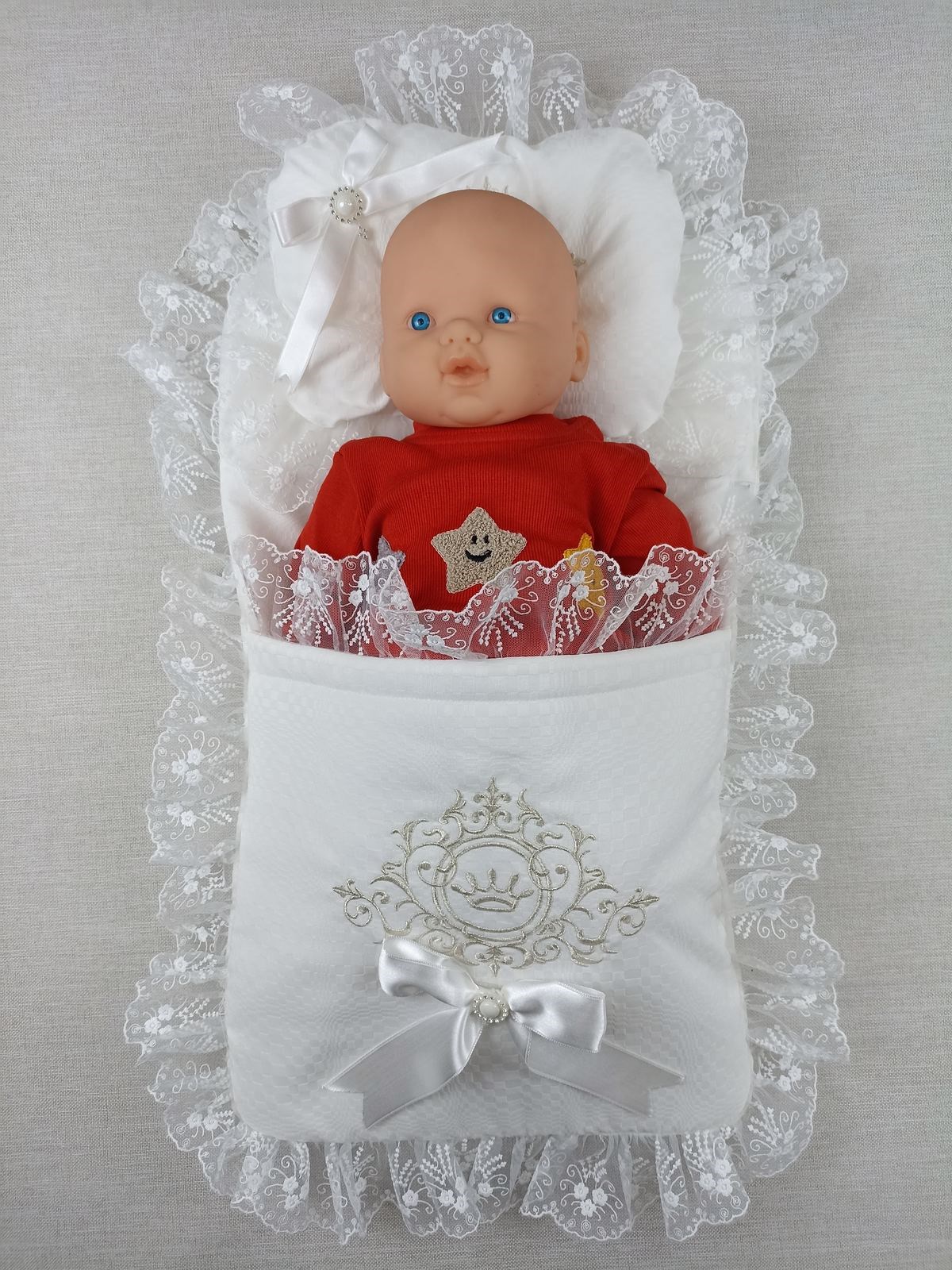 Yenidoğan Bambu Taç Nakışlı Kundaklı Trilüks 3lü Alt Açma Seti