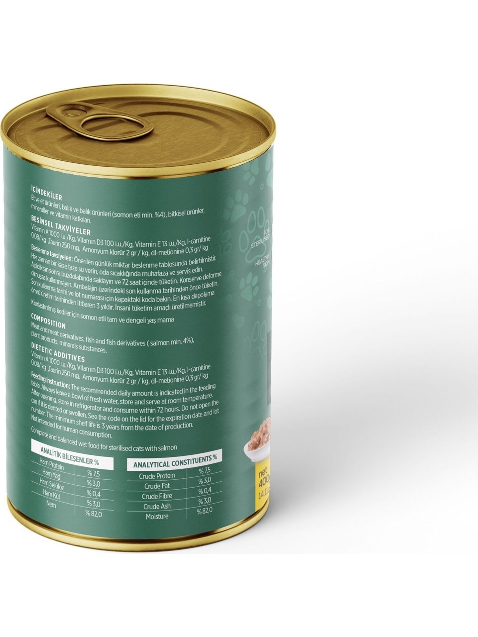 Petzzcats Somonlu Kısırlaştırılmış Kedi Konservesi 400 gr 1 Adet Petzz Cats Somonlu Kısırlaştırılmış Kedi Konservesi 400 g, kısırlaştırılmış yetişkin kedilerin özel beslenme ihtiyaçları göz önünde bulundurularak geliştirilmiş tam ve dengeli yaş mamadır. Gerçek somon balığı içeriğiyle yüksek kaliteli protein sunar. Parça etli ve soslu yapısı sayesinde hem iştah açıcıdır hem de kedinizin kolayca tüketmesini sağlar. Kısırlaştırma sonrası yavaşlayan metabolizmaya uygun formülüyle kilo kontrolünü desteklerken, sindirim sistemini yormaz. Yüksek nem oranı sayesinde böbrek ve idrar yolu sağlığının korunmasına yardımcı olur. Günlük ana öğün olarak ya da kuru mama ile birlikte güvenle kullanılabilir. Öne Çıkan Özellikler: