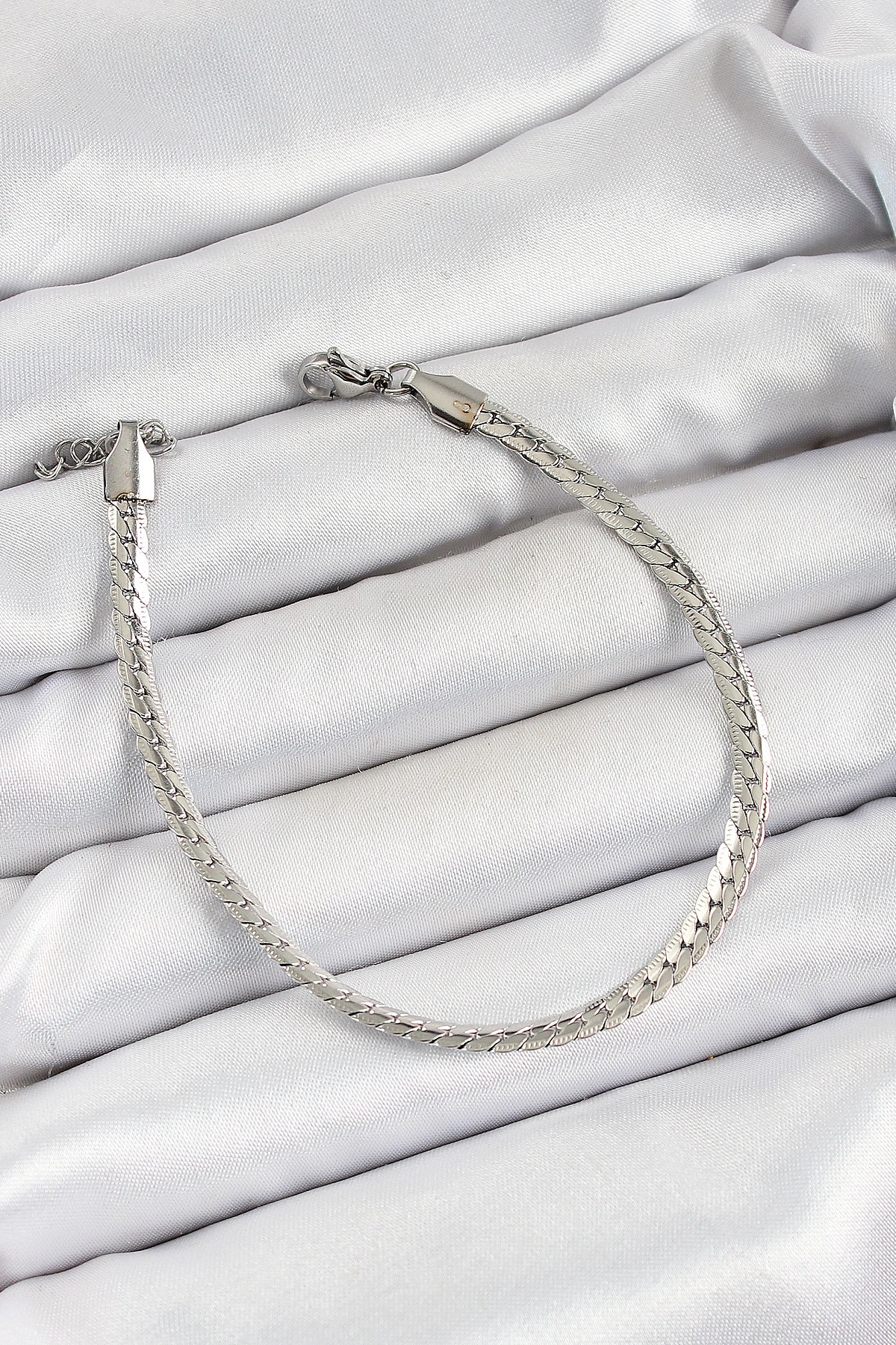 316L Çelik Gümüş Renk Ezme Zincir Erkek Bileklik