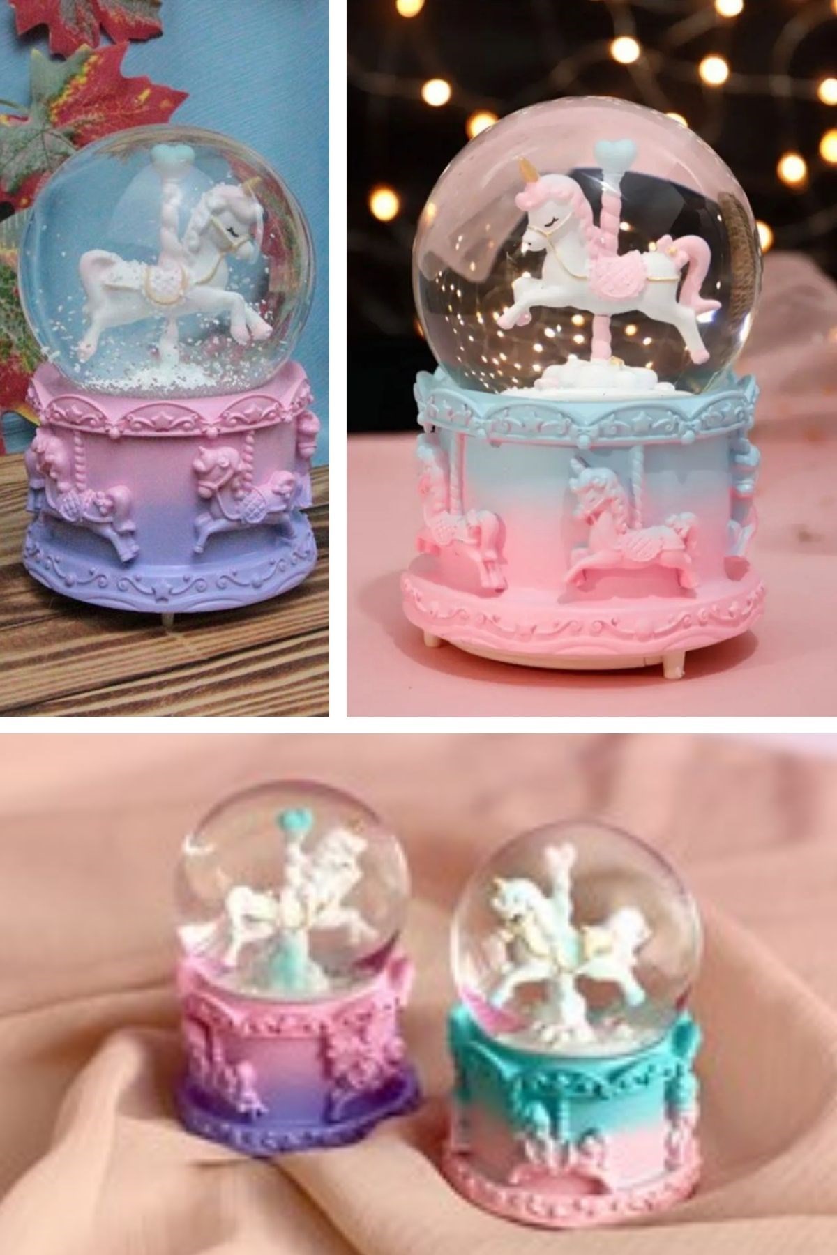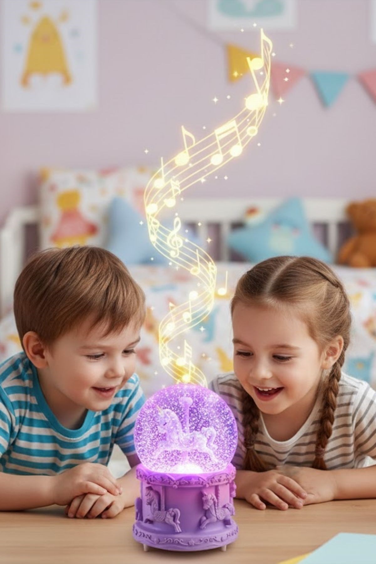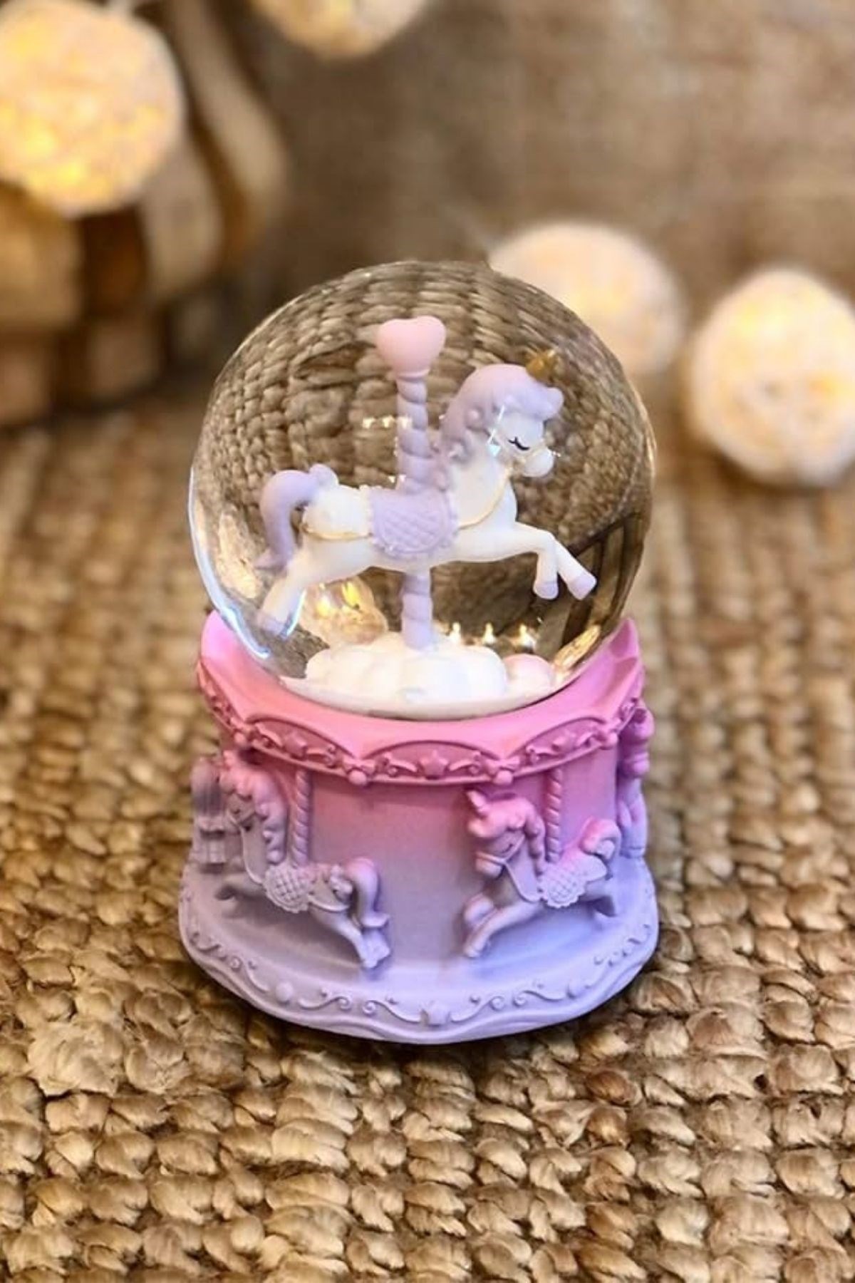 Pilli Işıklı Müzikli Kar Küresi–At Figürlü Eğlenceli Masaüstü Biblo, LED Aydınlatmalı Dekoratif Hediyelik Kar Küresi