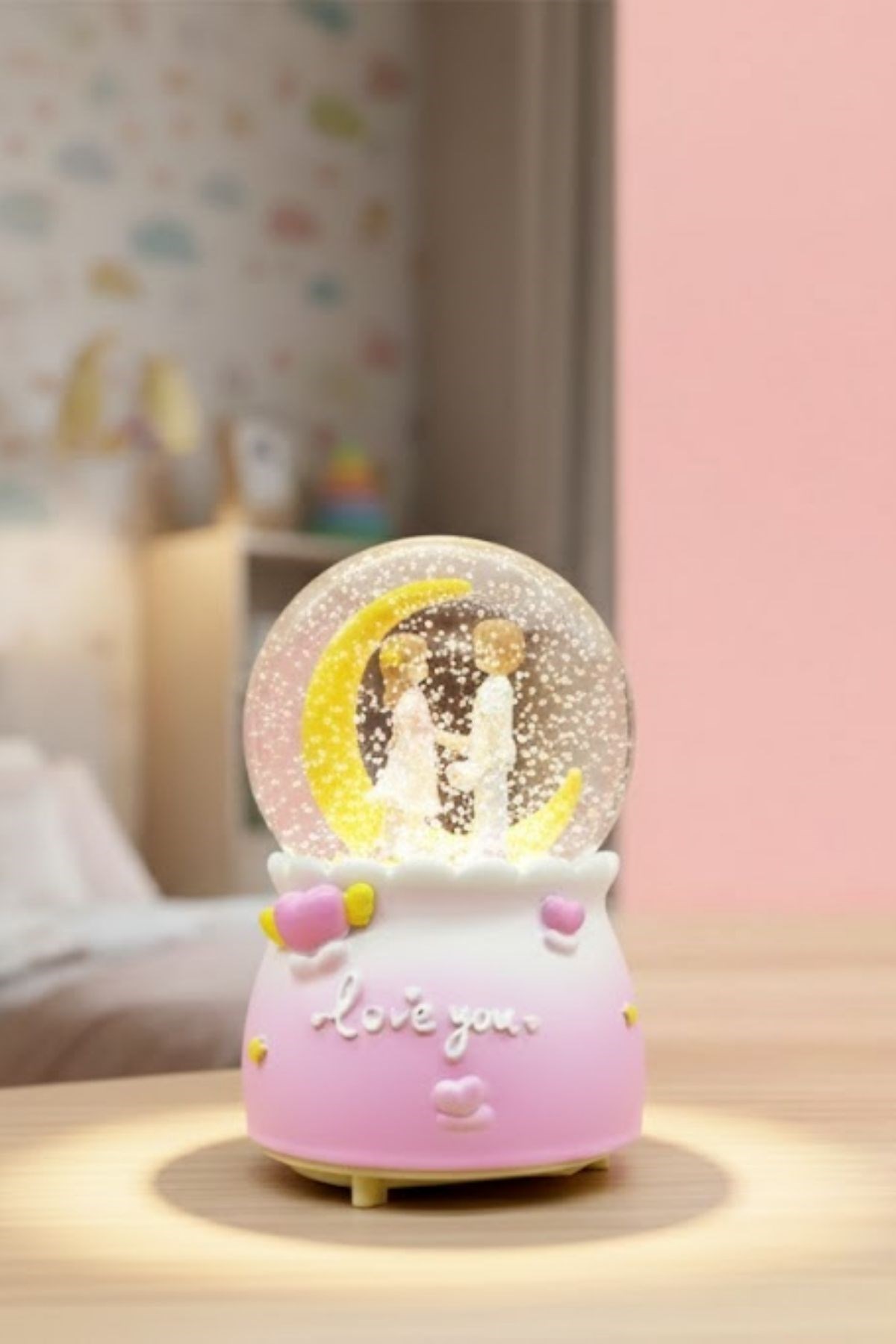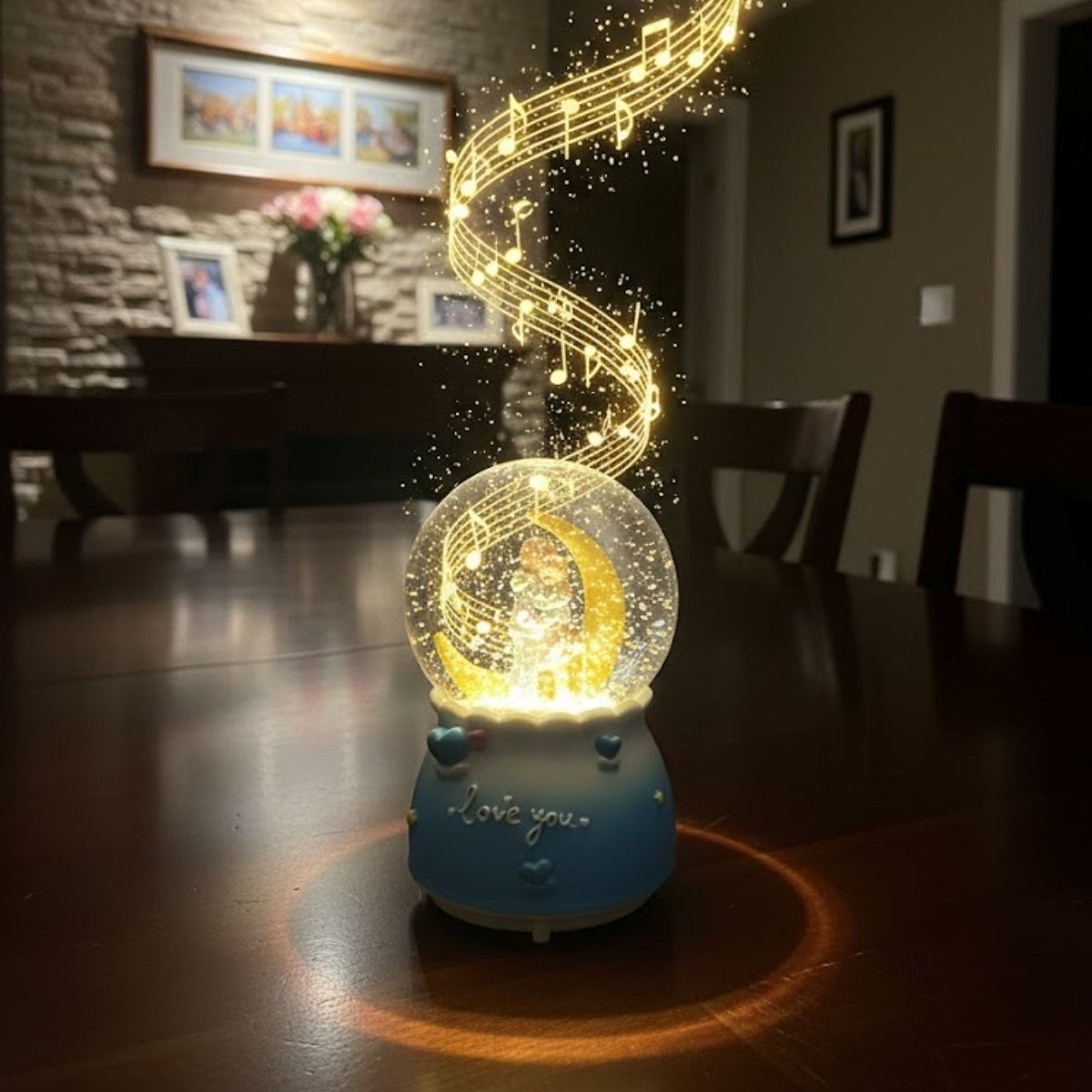 Işığı açıldığında kar tanelerinin ay figürü etrafında süzülmesi, loş ortamlarda şık ve huzur verici bir görünüm oluşturur. Müzik özelliğiyle birlikte romantik anlara eşlik ederken, sevdiklerinize hediye edebileceğiniz anlamlı ve estetik bir alternatif sunar. Sevgililer Günü, doğum günü, yıl dönümü ve özel günler için zarif bir hediyedir.