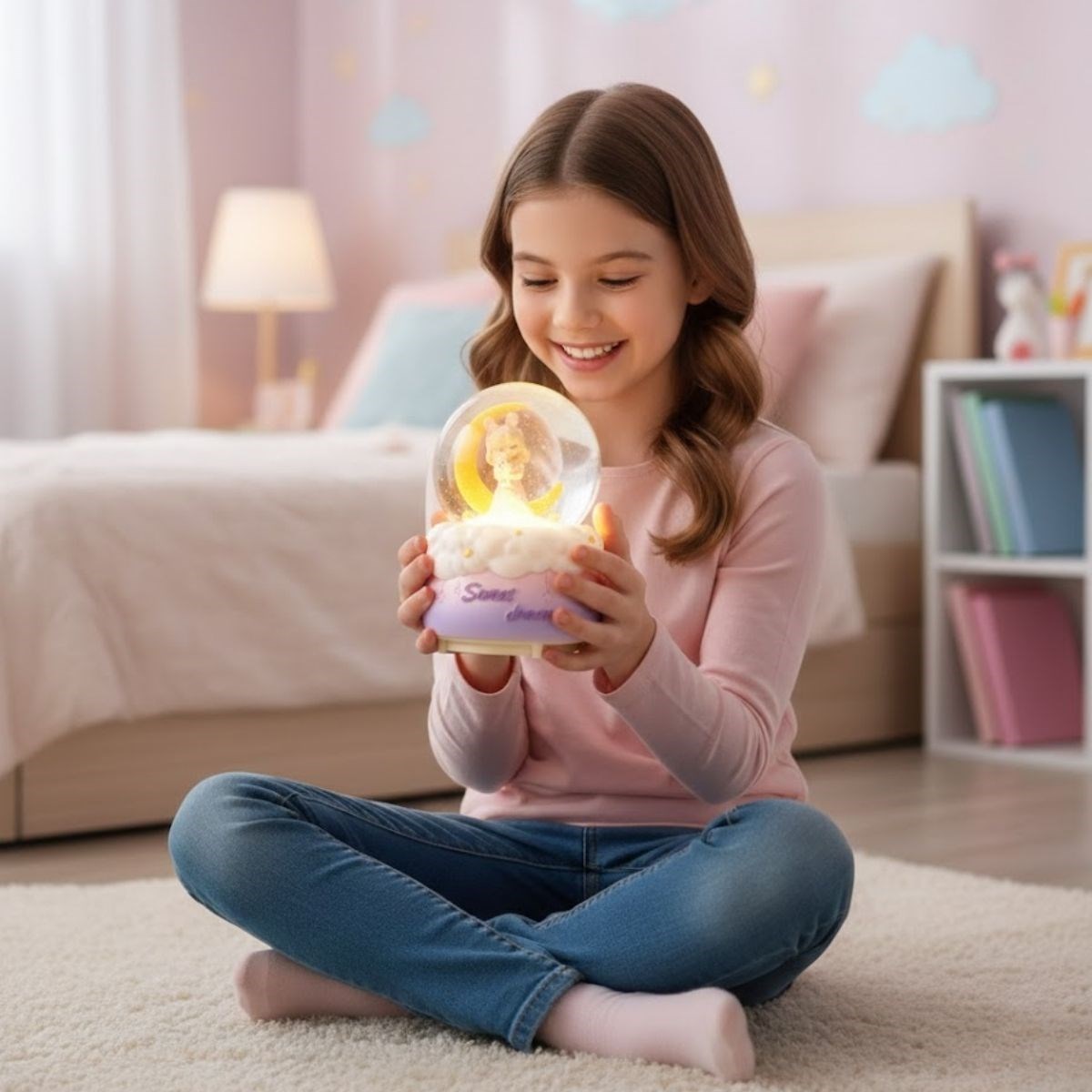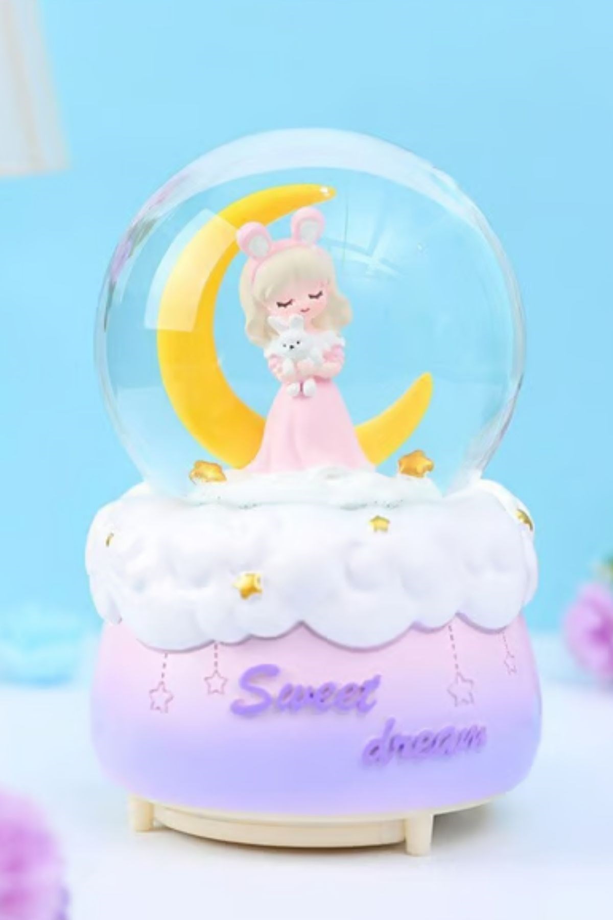 Pilli Işıklı Müzikli Kar Küresi, hilal ay önünde yer alan zarif prenses figürüyle masalsı ve romantik bir atmosfer sunar. Küre içerisinde süzülen kar taneleri, detaylı prenses figürüyle birleşerek büyüleyici bir görsel şölen oluşturur. LED aydınlatması sayesinde loş ortamlarda da dikkat çeken bu dekoratif biblo, bulunduğu ortama sıcak ve yumuşak bir ambiyans katar.