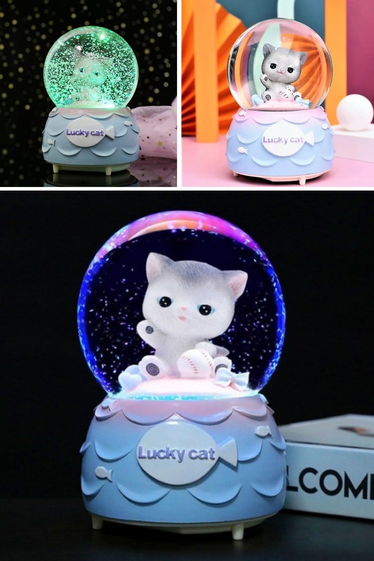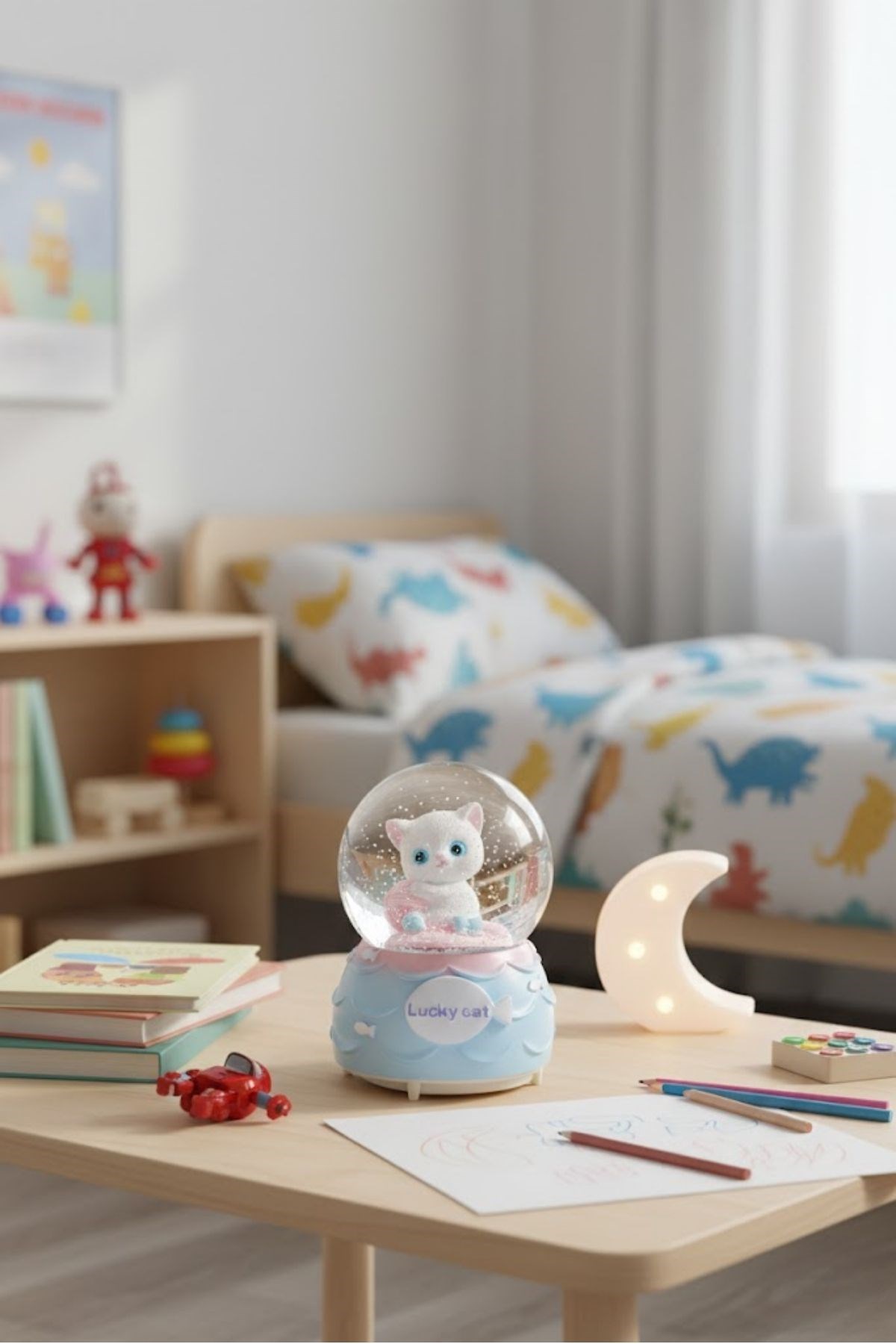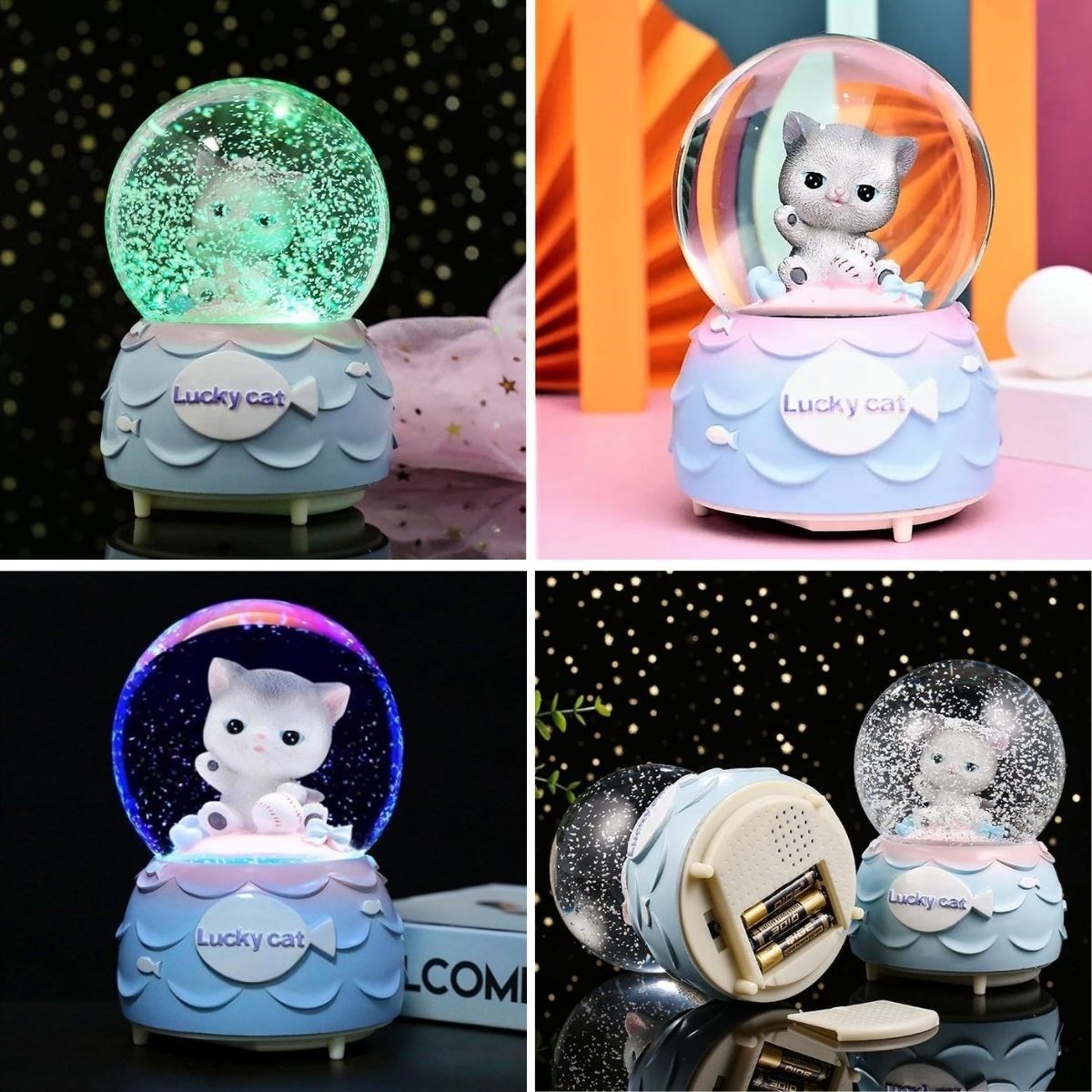 Şanslı Toplu Kedi Figürlü Işıklı ve Müzikli Kar Küresi, sevimli tasarımı ve şans temalı figürüyle yaşam alanlarınıza neşe ve pozitif enerji katar. Küre içerisinde yer alan şanslı toplu kedi figürü, dönen kar taneleriyle birlikte göz alıcı bir görsel şölen sunarken LED aydınlatması sayesinde bulunduğu ortama sıcak ve hoş bir ambiyans kazandırır.