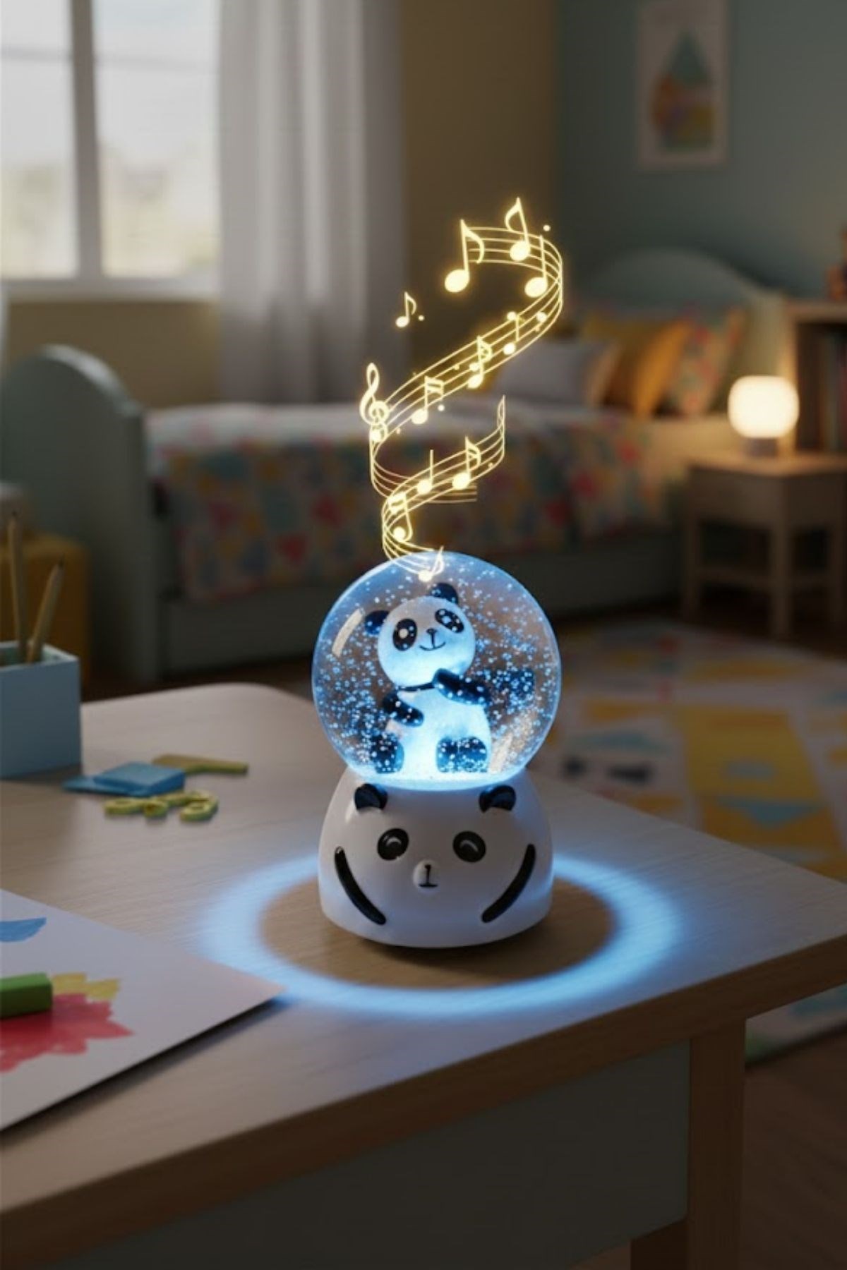 Pilli Işıklı Müzikli Kar Küresi, sevimli panda figürüyle yaşam alanlarınıza neşe ve sıcaklık katar. Küre içerisinde yer alan detaylı panda figürü, süzülen kar taneleriyle birlikte eğlenceli ve göz alıcı bir görsel şölen sunarken LED aydınlatması sayesinde loş ortamlarda da dekoratif bir ambiyans oluşturur.