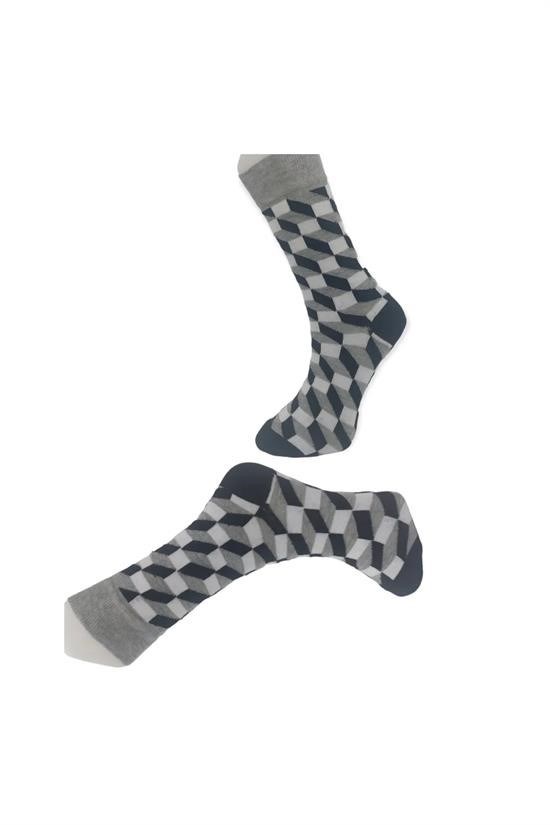 3d Blok Desenli Soket Çorap - Siyah 42-46