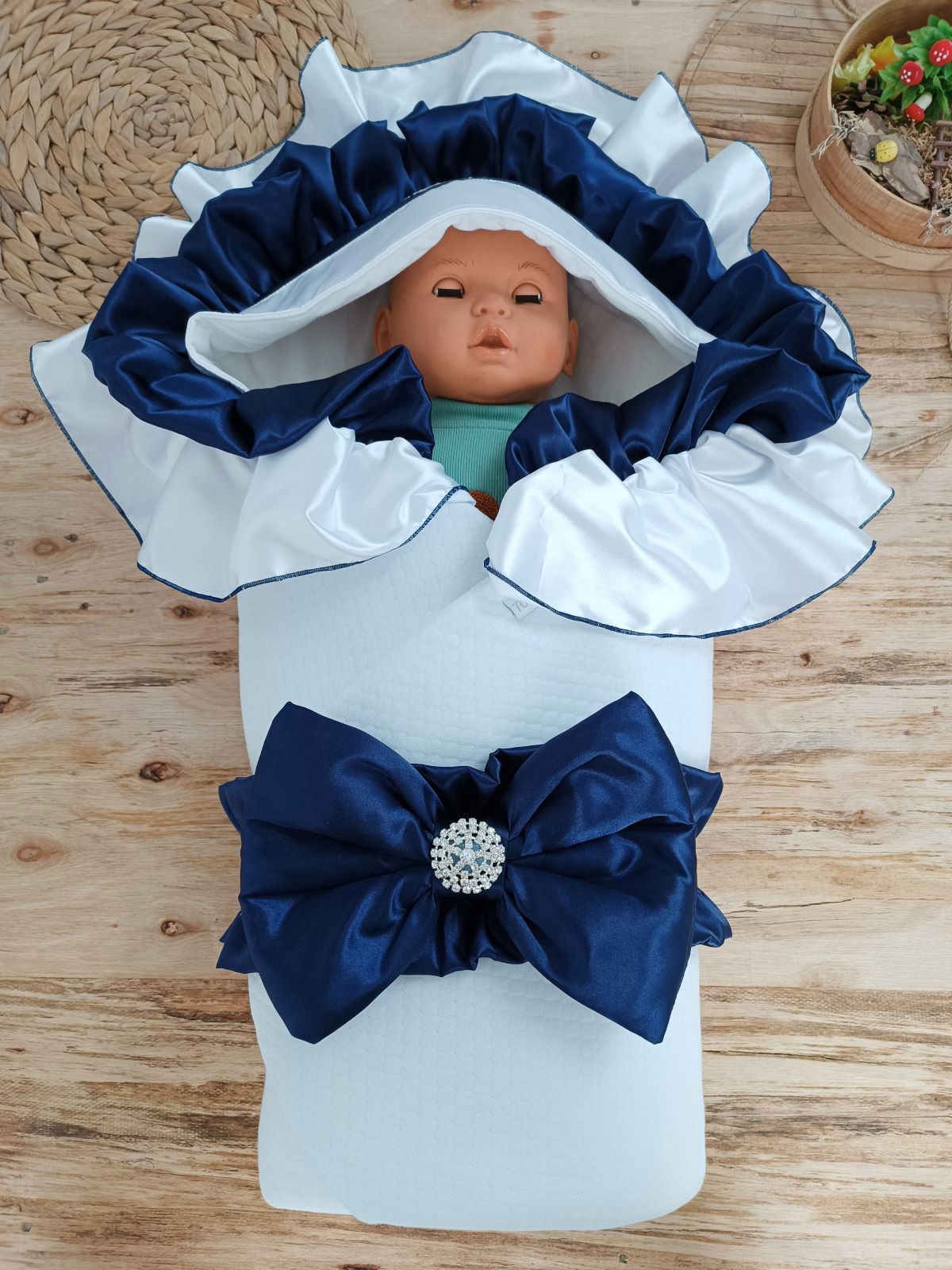 Yenidoğan Mehtap Lüks Kelebek Taç Nakışlı Bebek Battaniyesi Kundak