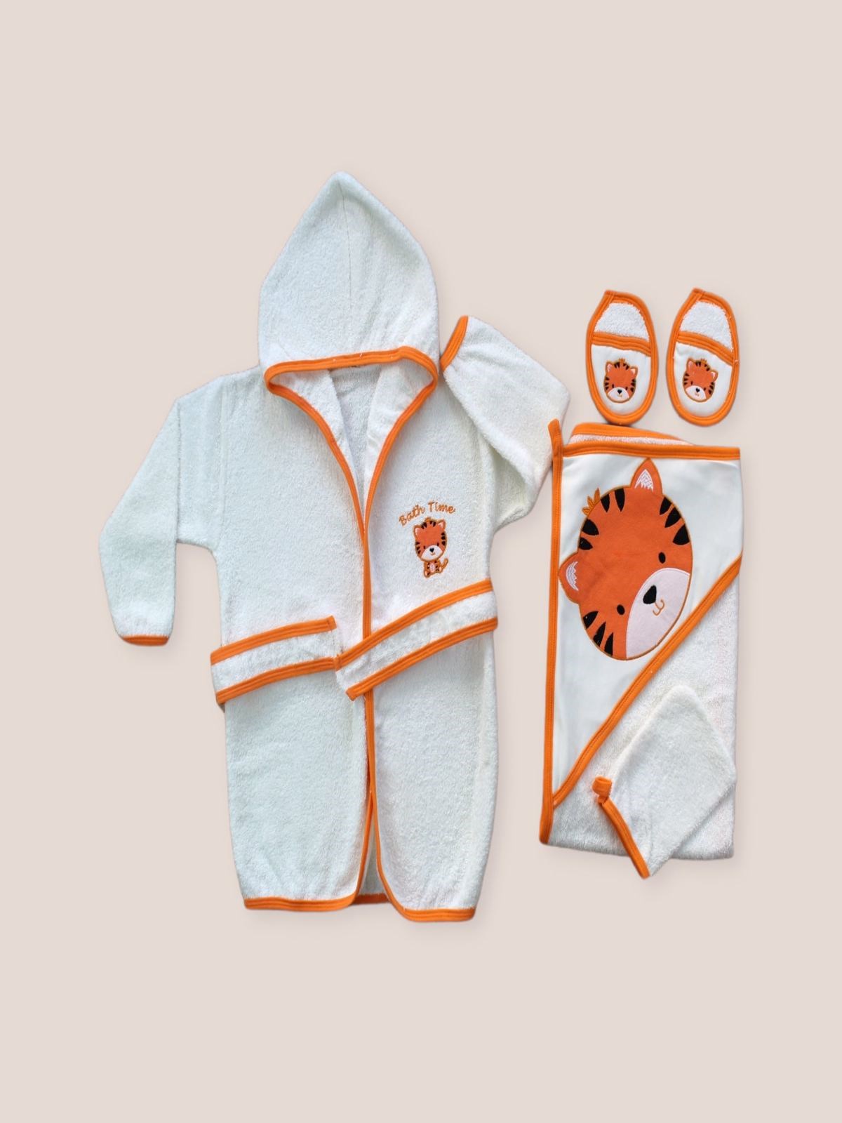 0-6 Ay Kaplan Nakışlı Bornozlu 5li Erkek Bebek Havlu Silgi Takımı