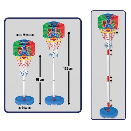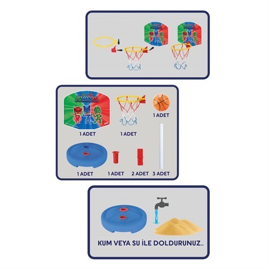 Basketbol oynamanın tadını, Pj Masks Basket Pota ile çıkar! Ürün; 93 cm ve 126cm olarak 2 farklı şekilde kullanılabilir. Ürün; 3 yaş altı çocuklar için uygun değildir. Sağlık testlerinden geçmiştir. Yerli üretimdir.