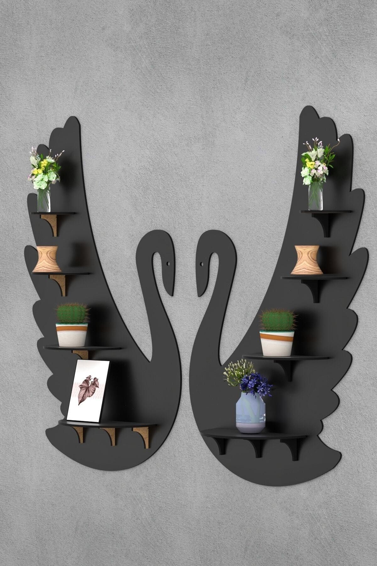 Siyah Ahşap Dekoratif Kuğu Raf Seti 2'li