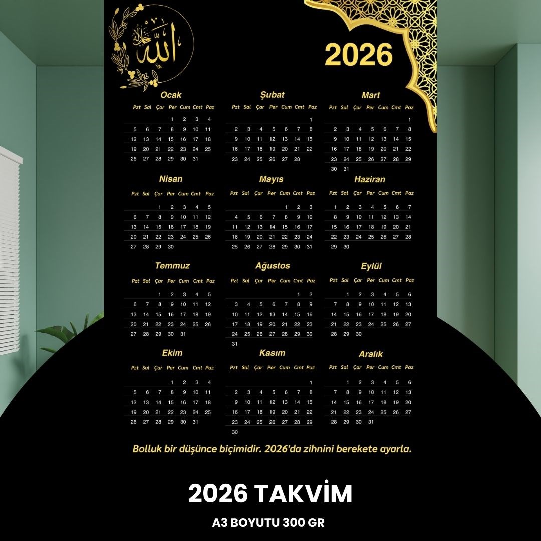 Takvim 2026 Premium A3 300 Gr Dijital Baskı Altın
