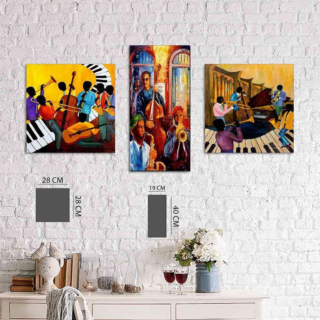 3 Parça Modern Müzikal Çizim Mdf Tablo - 3Yatay-555 30X40