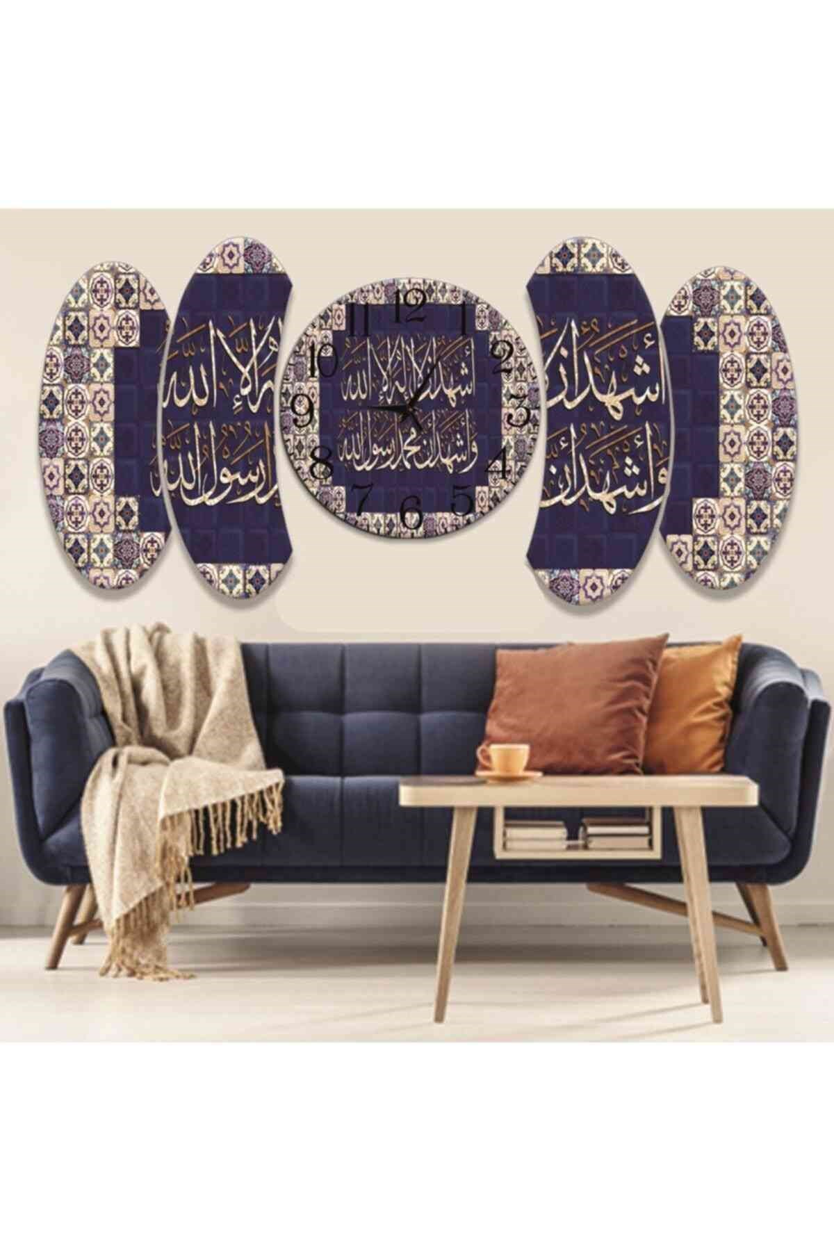 5 Parça Dua Temalı Tasarım Saatli Mdf Tablo