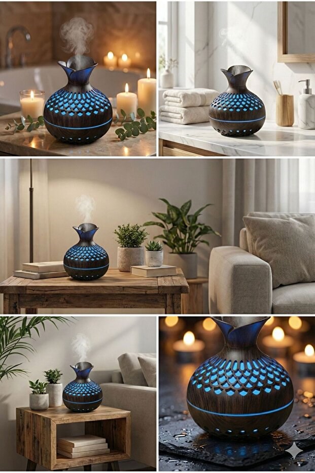 Bu aromaterapi difüzör ve hava nemlendirici, evinizde, ofisinizde veya yoga stüdyonuzda rahatlatıcı bir atmosfer yaratmak için mükemmel bir seçimdir. Hem fonksiyonel hem de dekoratif özellikleriyle yaşam kalitenizi artırır.
