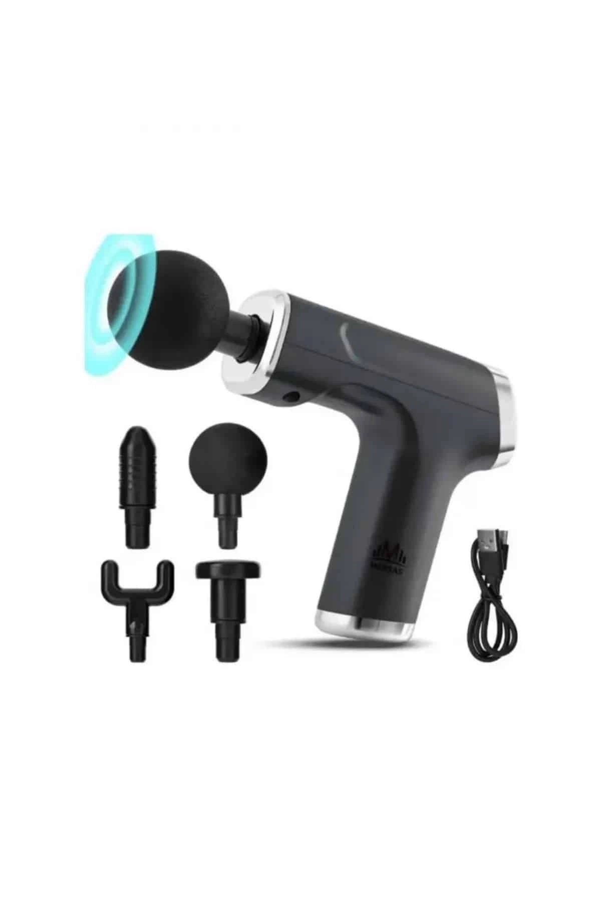 Mini Masaj Tabancası 4 Başlık 6 Hız Ayarlı