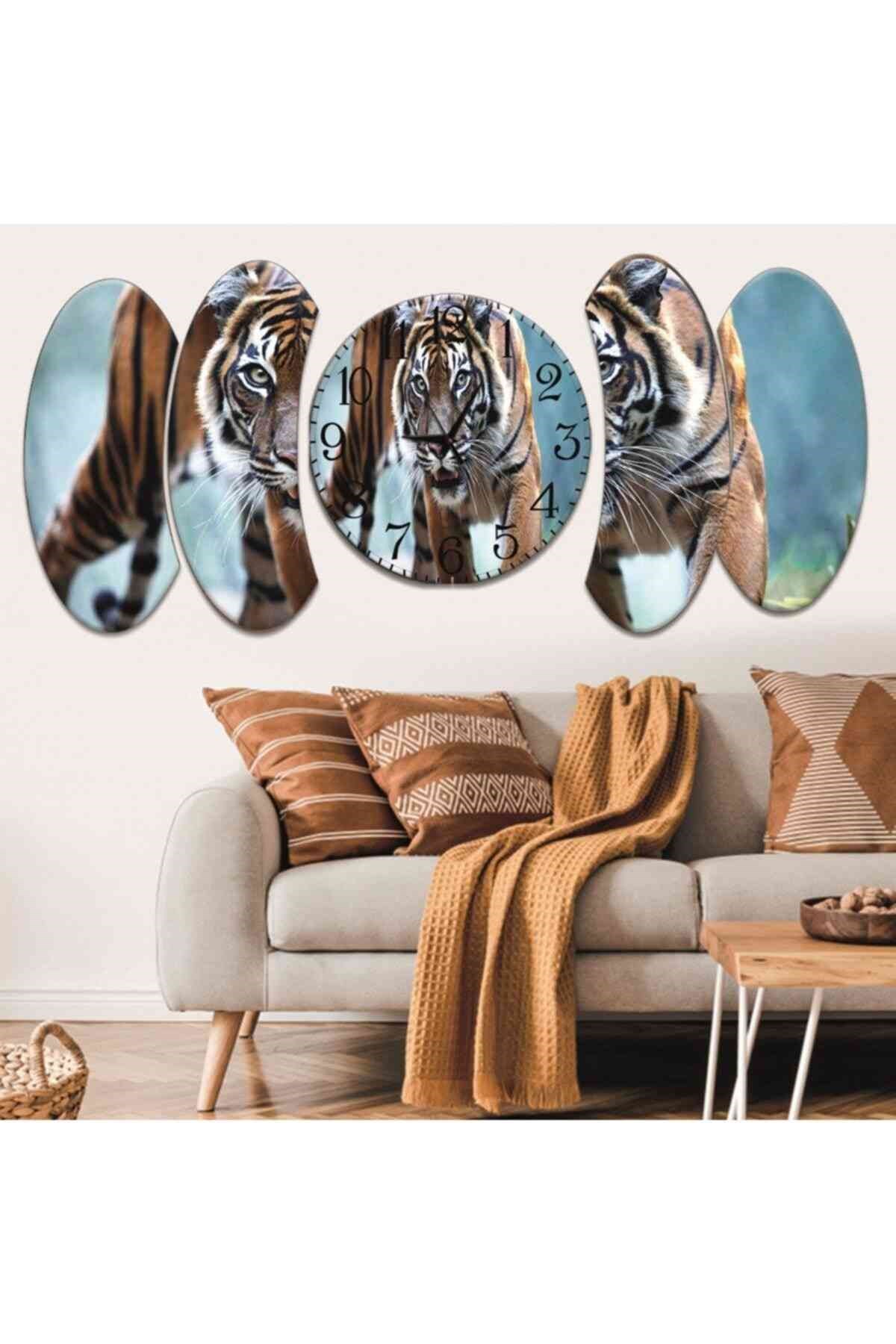 5 Parça Kaplan Tasarım Saatli Mdf Tablo