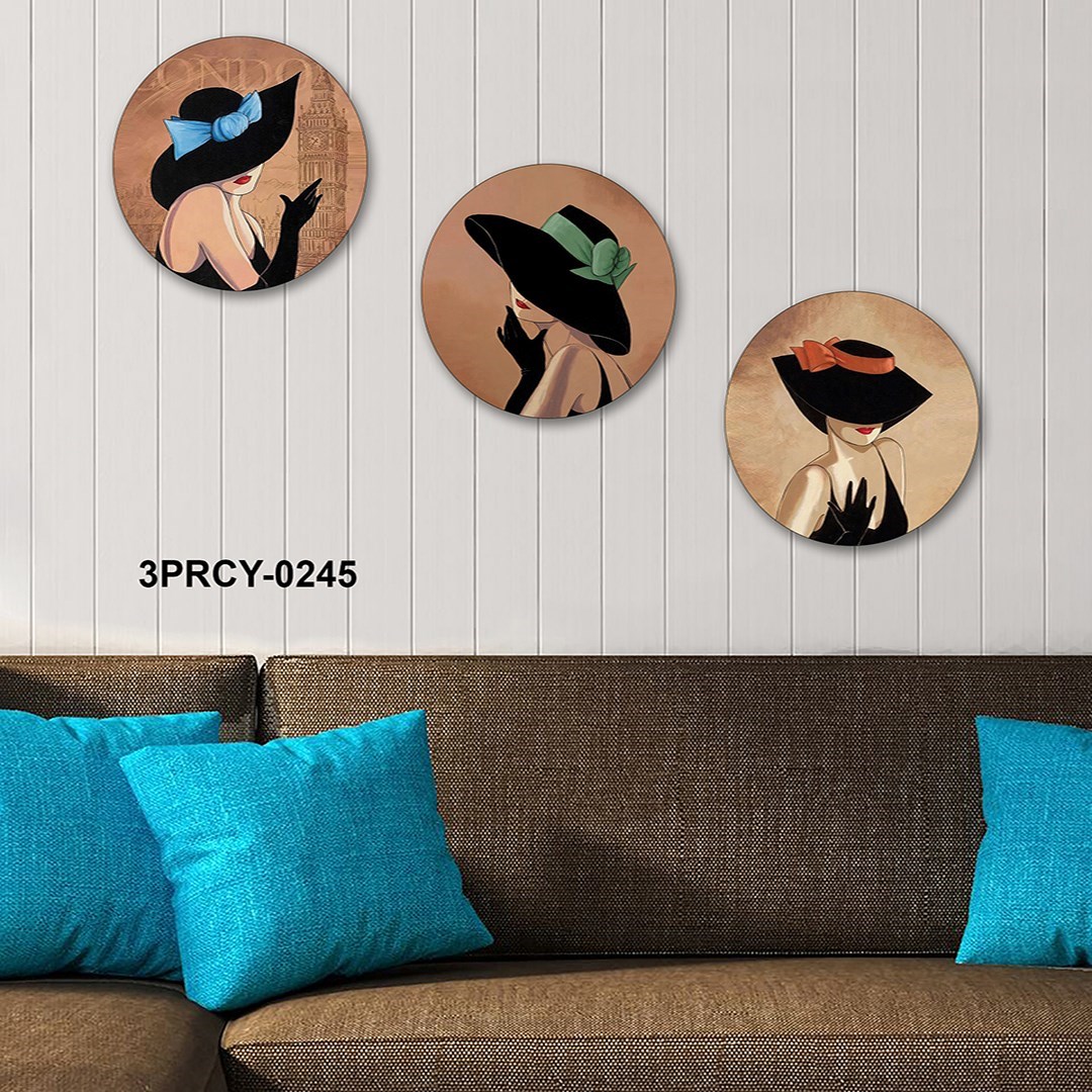 3 Parça Mdf Tablo Dekoratif Şapkalı Kadın - T-3Prcy-0245 30X30