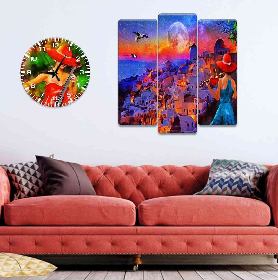 Evimona 4 Parça Kırmızı Şapkalı Kadın Temalı Mdf Saatli Tablo Ds-0104