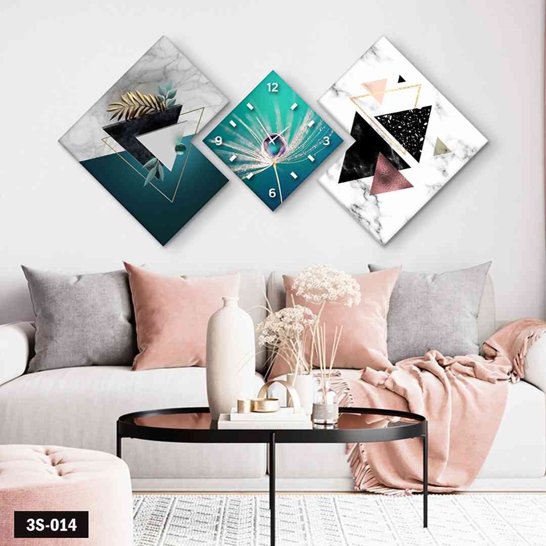 3 Parça Saatli Mdf Tablo İllüstrasyon - 3S-014 160X60