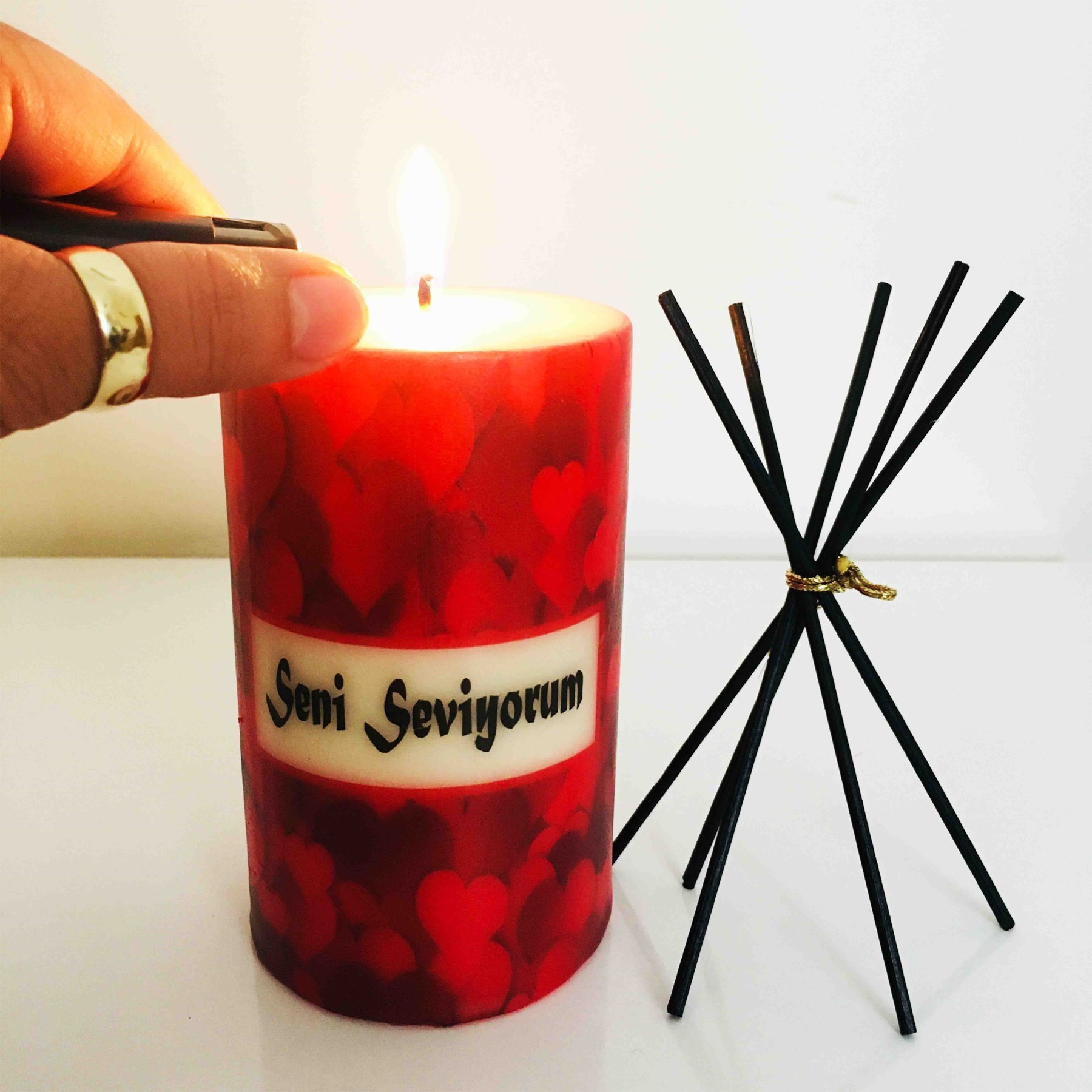 Sevgililer Gününe Özel Seni Seviyorum Temalı Kalpli Desen Baskılı Mum 4