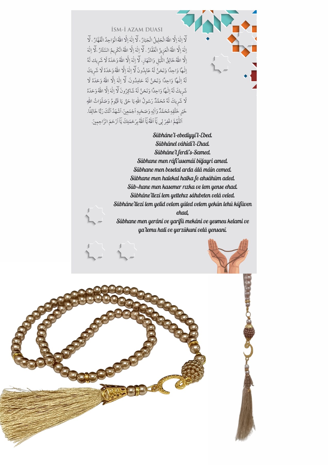 Namaz Tesbihi Vavlı 99'lu Cam İncili İsmi Azam Dua Kartı İle Süt Kahve Renk Hediyelik