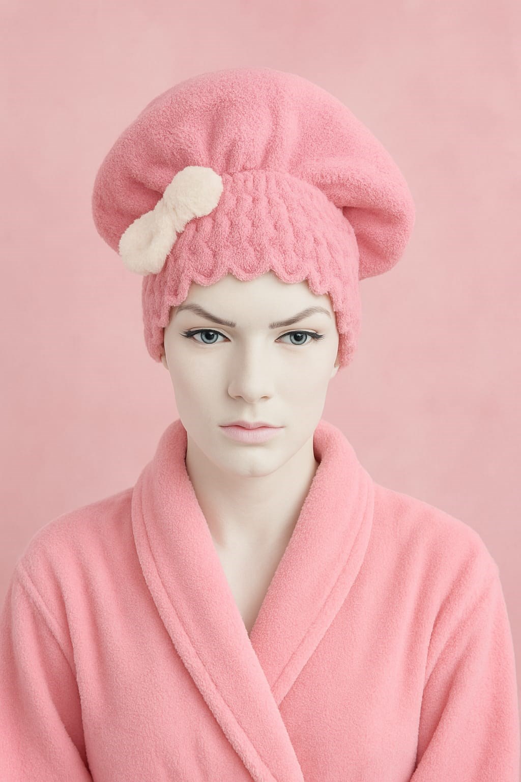 Saç Kurulama Banyo Duş Bonesi – %100 Pamuk , Fiyonklu Pembe