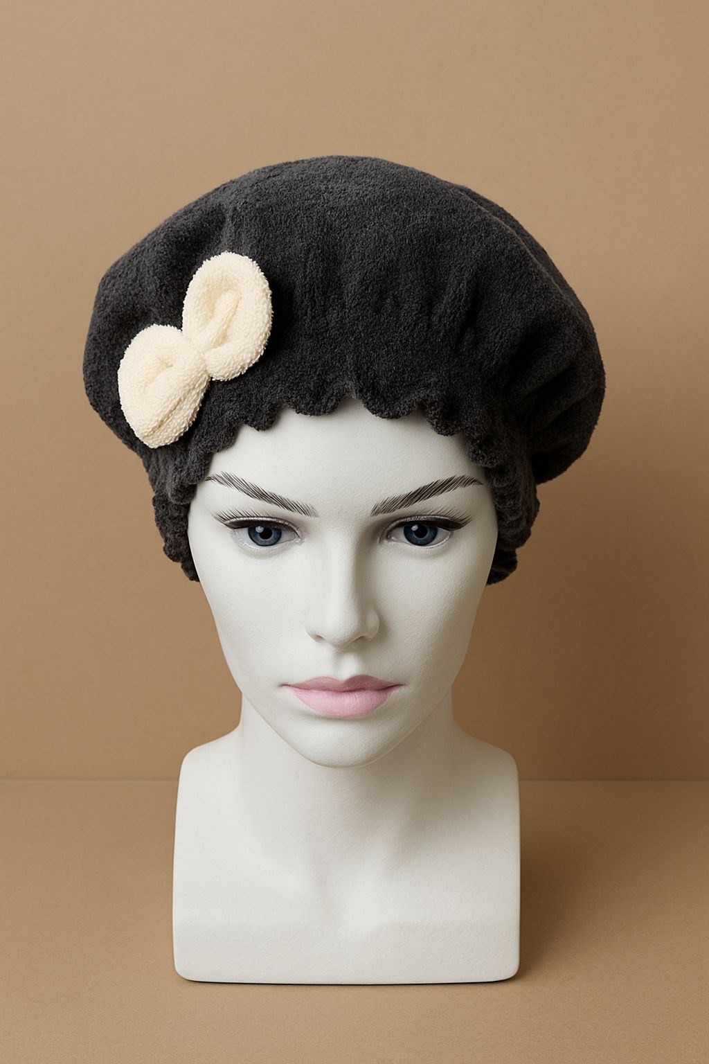 Saç Kurulama Banyo Duş Bonesi – %100 Pamuk , Fiyonklu Siyah