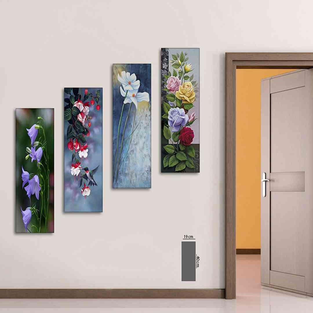 4 Parça Renkli Çiçekler Mdf Tablo - T-4Dikey-13 19X40