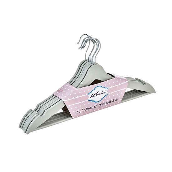 Ahşap Görünümlü Plastik Askı (6’Lı Beyaz) - 28783