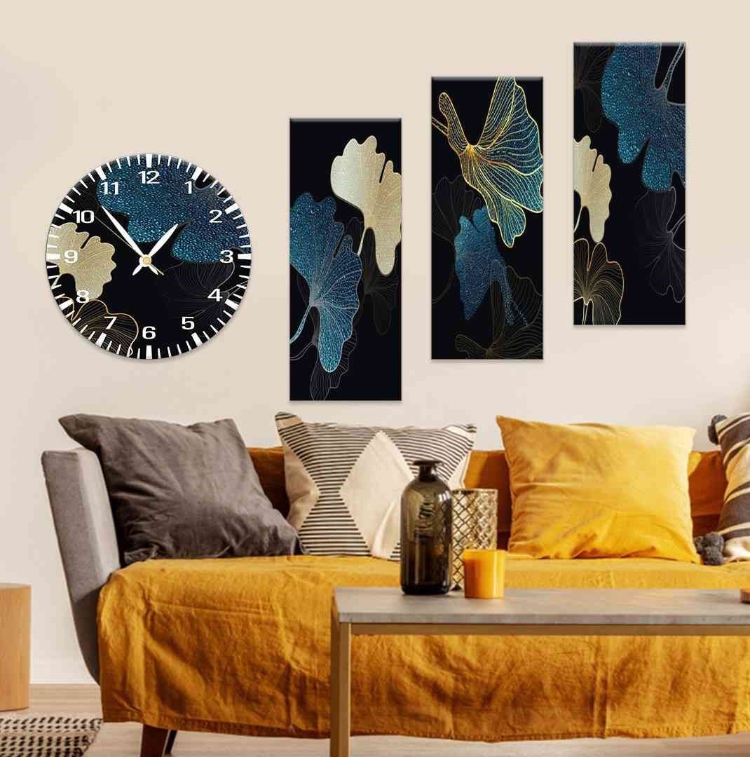 Evimona 4 Parça Çiçek Temalı Mdf Saatli Tablo Ds-086