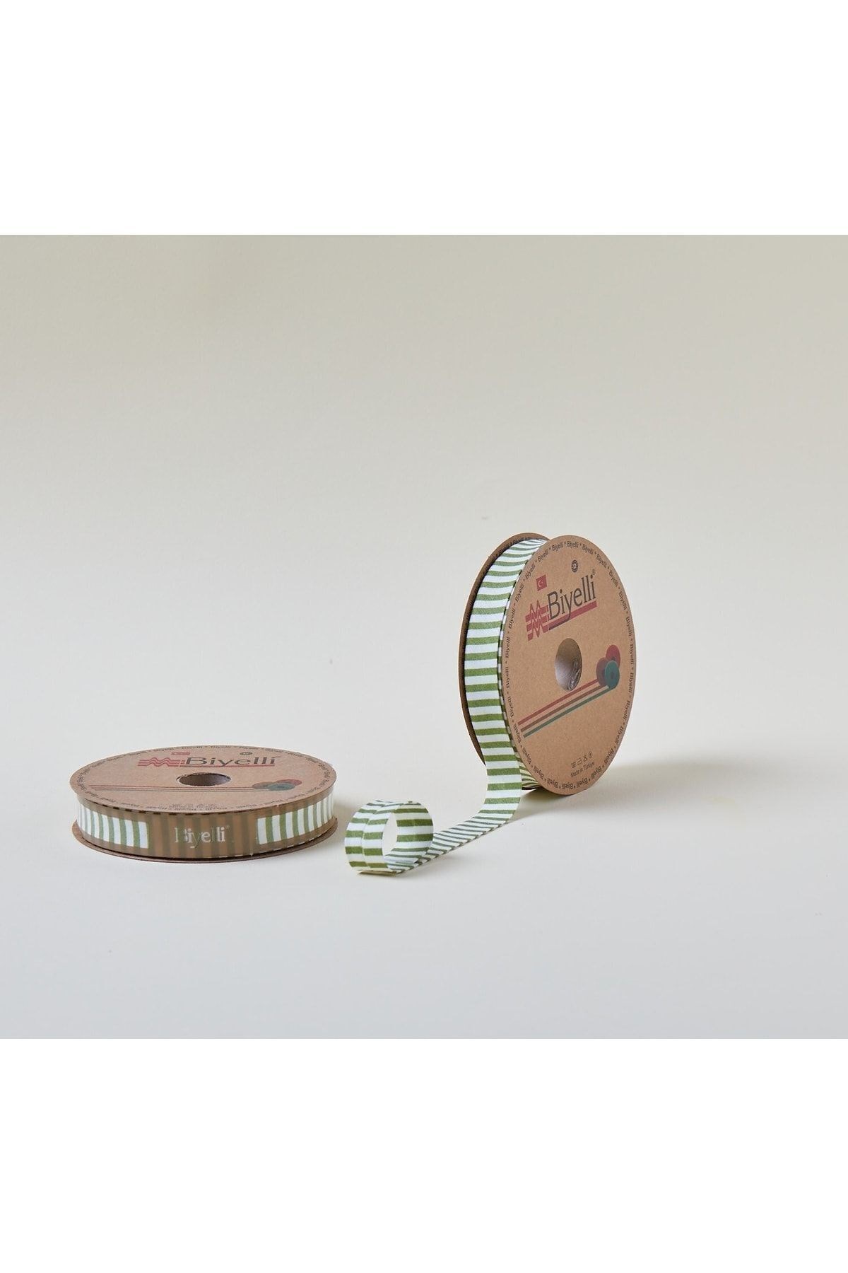 Biye Kalın Çizgili Katlı F12 Yeşil 2 Cm 25 Metre %65 Koton %35 Polyester
