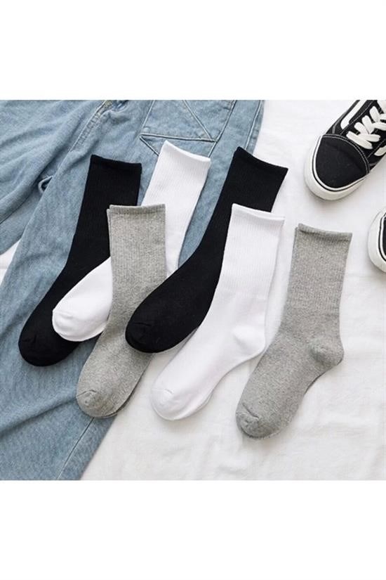 10'lu Paket Siyah Beyaz Gri Renk Pamuklu Kolej Tenis Çorap 36-40