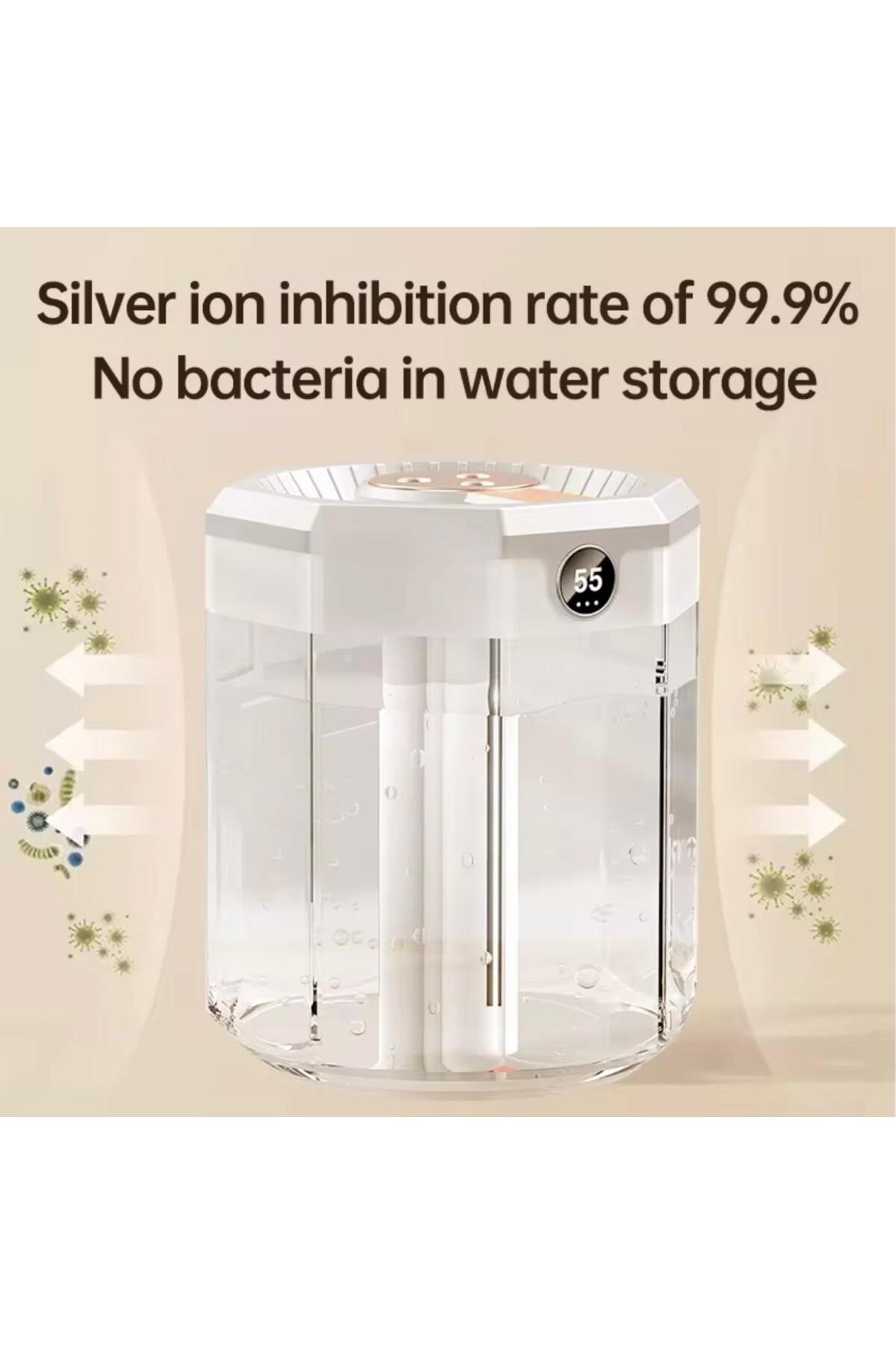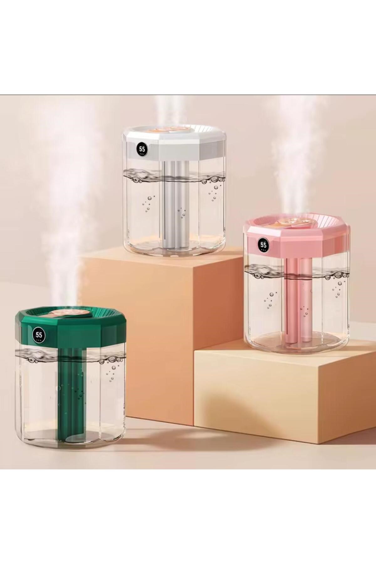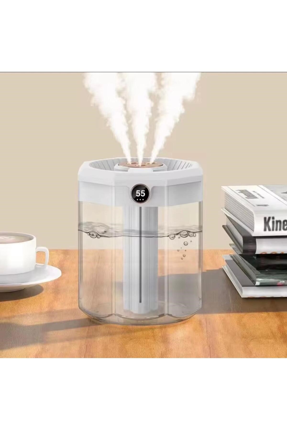 Modern tasarımı ve güçlü performansıyla öne çıkan bu şeffaf gövdeli dijital hava nemlendirici, ortam havasını nemlendirirken estetik bir görünüm sunar.; Üst kısmındaki üçlü buhar çıkışı sayesinde kısa sürede etkili nemlendirme sağlar.; Dijital ekranı sayesinde nem oranını kolayca takip edebilirsiniz.; 💧 Özellikler: • Yüksek buhar çıkışı ile güçlü nemlendirme • Şeffaf su haznesi – su seviyesi görünür • Akıllı dijital ekran (nem göstergesi) • Sessiz çalışma teknolojisi • USB bağlantı ile kolay kullanım • Otomatik kapanma güvenlik sistemi 🏠 Kullanım Alanları: Ev, ofis, yatak odası, çocuk odası veya çalışma alanlarında hava kuruluğunu giderir.; Cildi ve solunumu rahatlatır, ferah bir ortam oluşturur.;