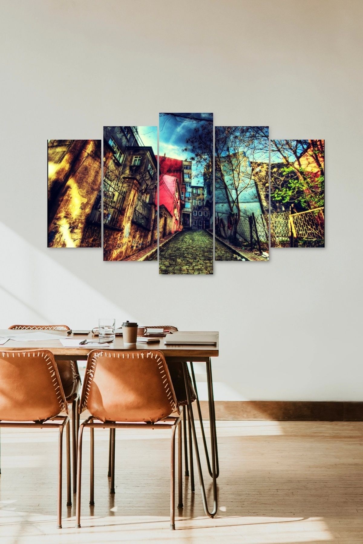Modern tasarımıyla dikkat çeken bu 5 parçalı MDF tablo, şehir manzaralarını evinizin dekorasyonuna şık bir dokunuş katıyor; Kaliteli MDF malzemesi sayesinde uzun ömürlü kullanım sunar ve dayanıklılığıyla öne çıkar; Her bir parçada detaylı şehir manzaraları işlenerek, görsel bir şölen sunar ve mekanınıza modern bir hava katar;